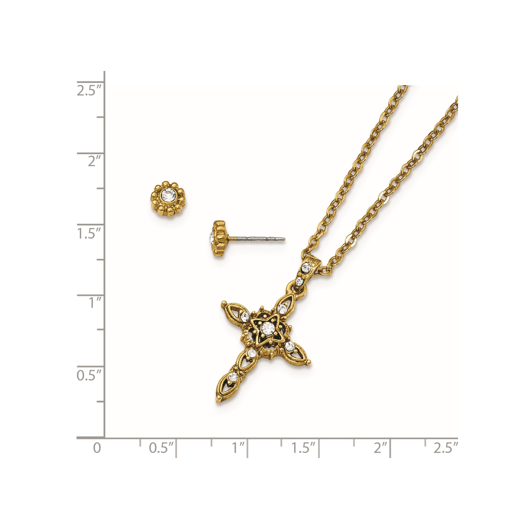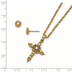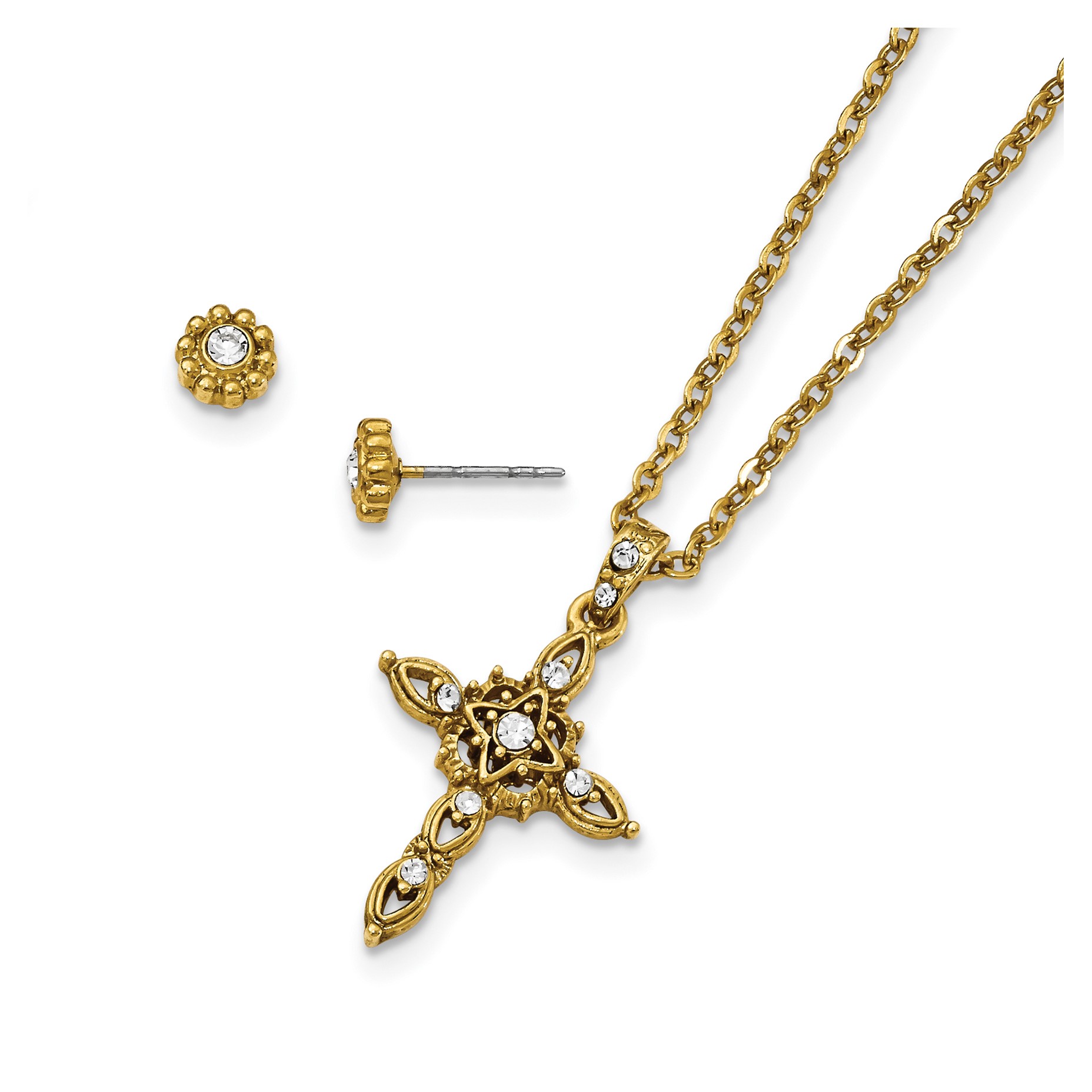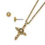Gold-tone Crystal 16in with 3in ext Cross Necklace with Post Earrings Set