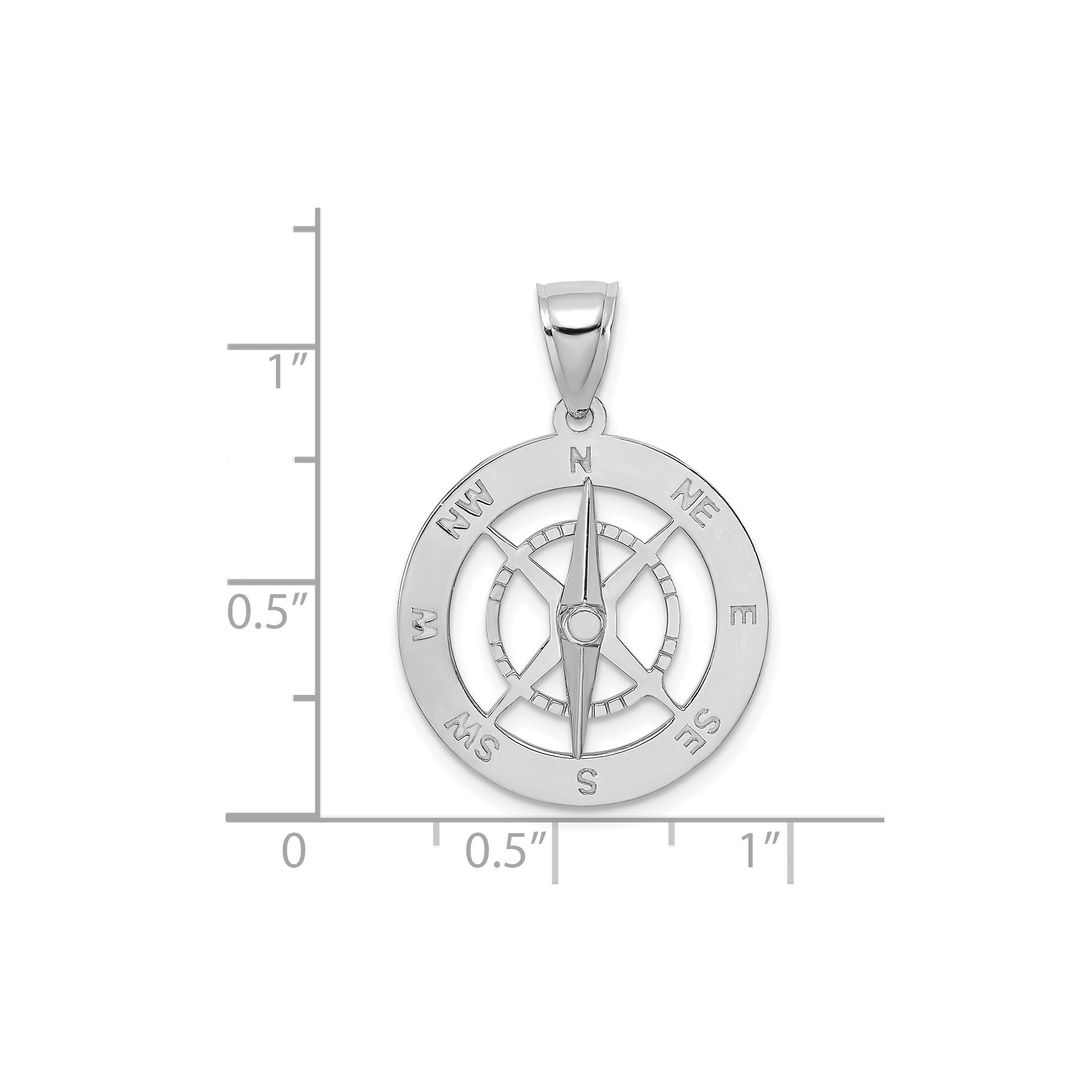 14K White Gold NAUTICAL COMPASS with MOVEABLE NEEDLE Charm