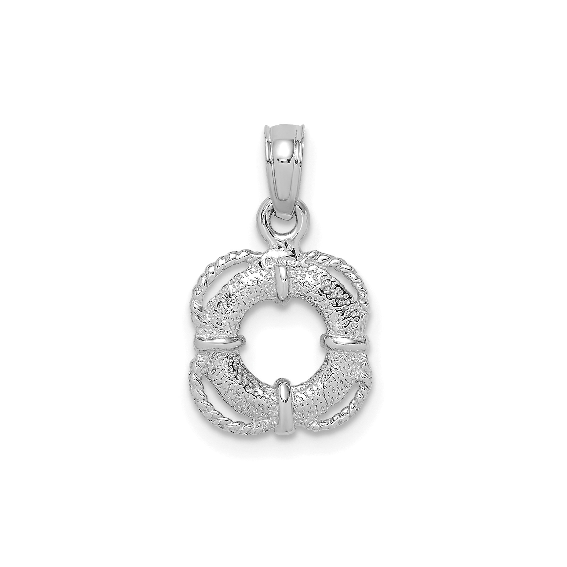 14K White Gold 3-D LIFESAVER RING WITH ROPE TRIM