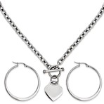 Stainless Steel Heart necklace with Hoop Earrings Set
