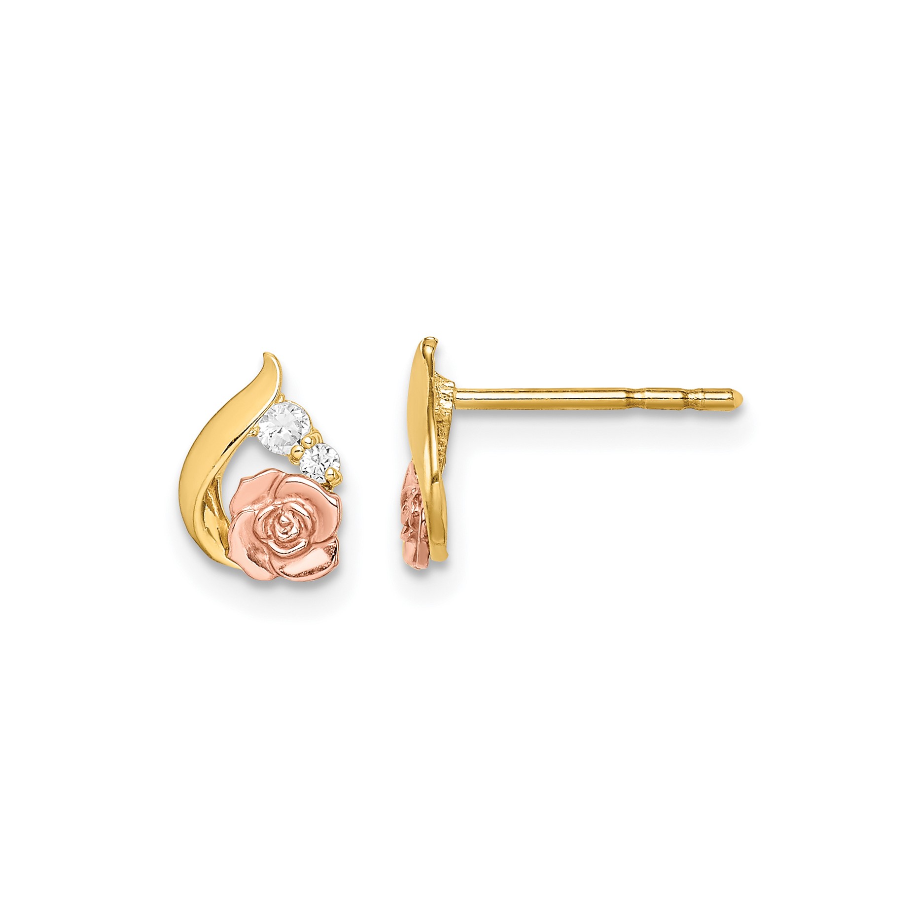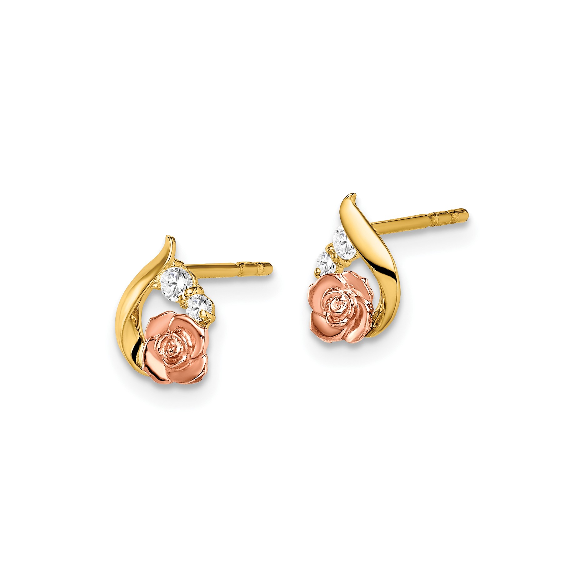 14k Madi K Two-Tone CZ Flower Post Earrings