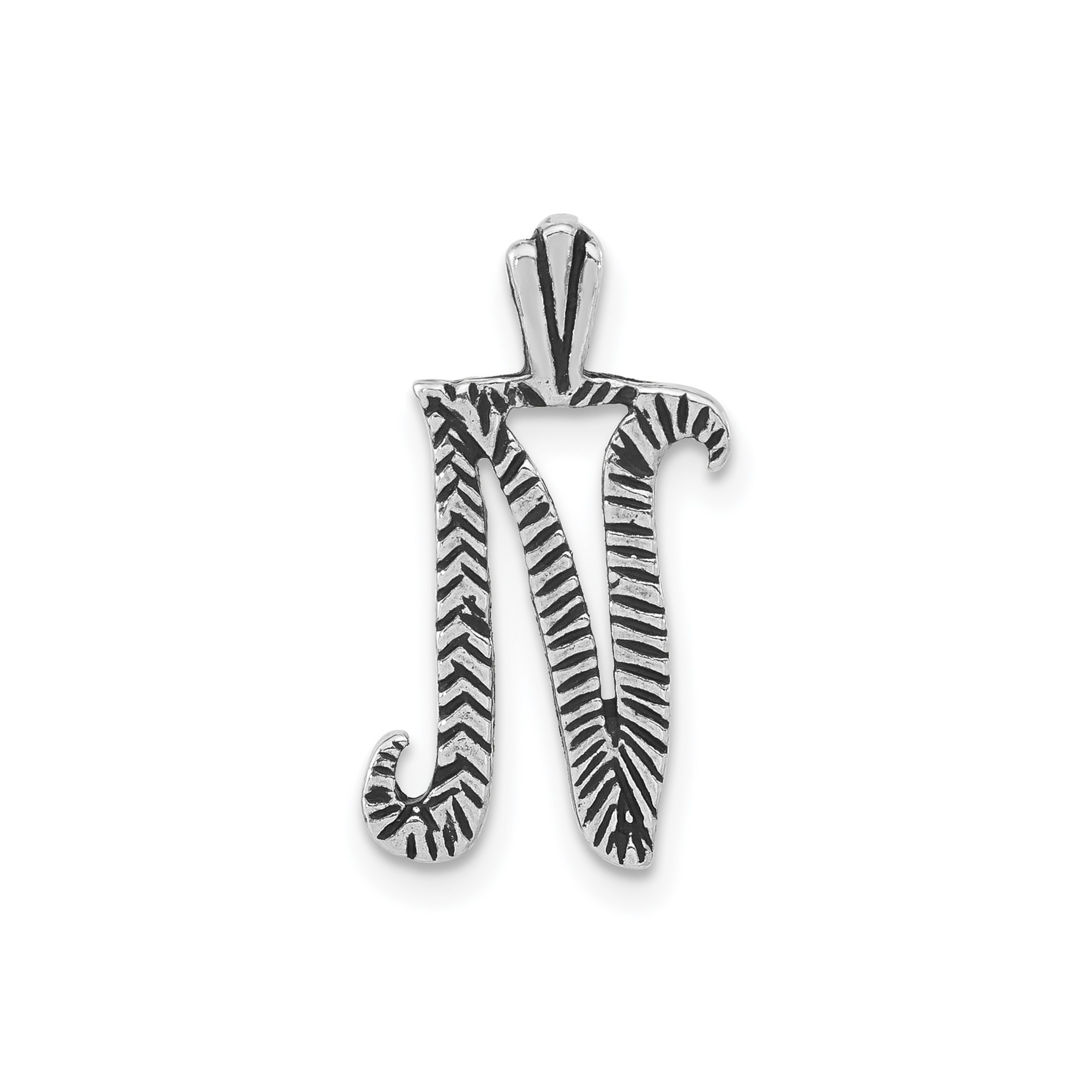 Sterling Silver Antiqued and Textured Letter N Chain Slide