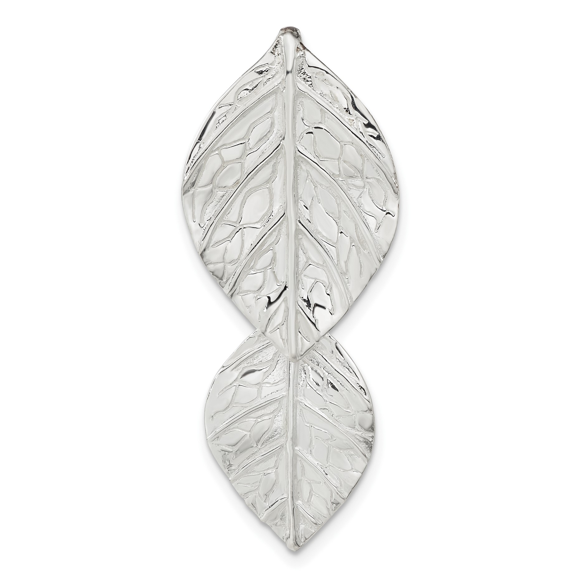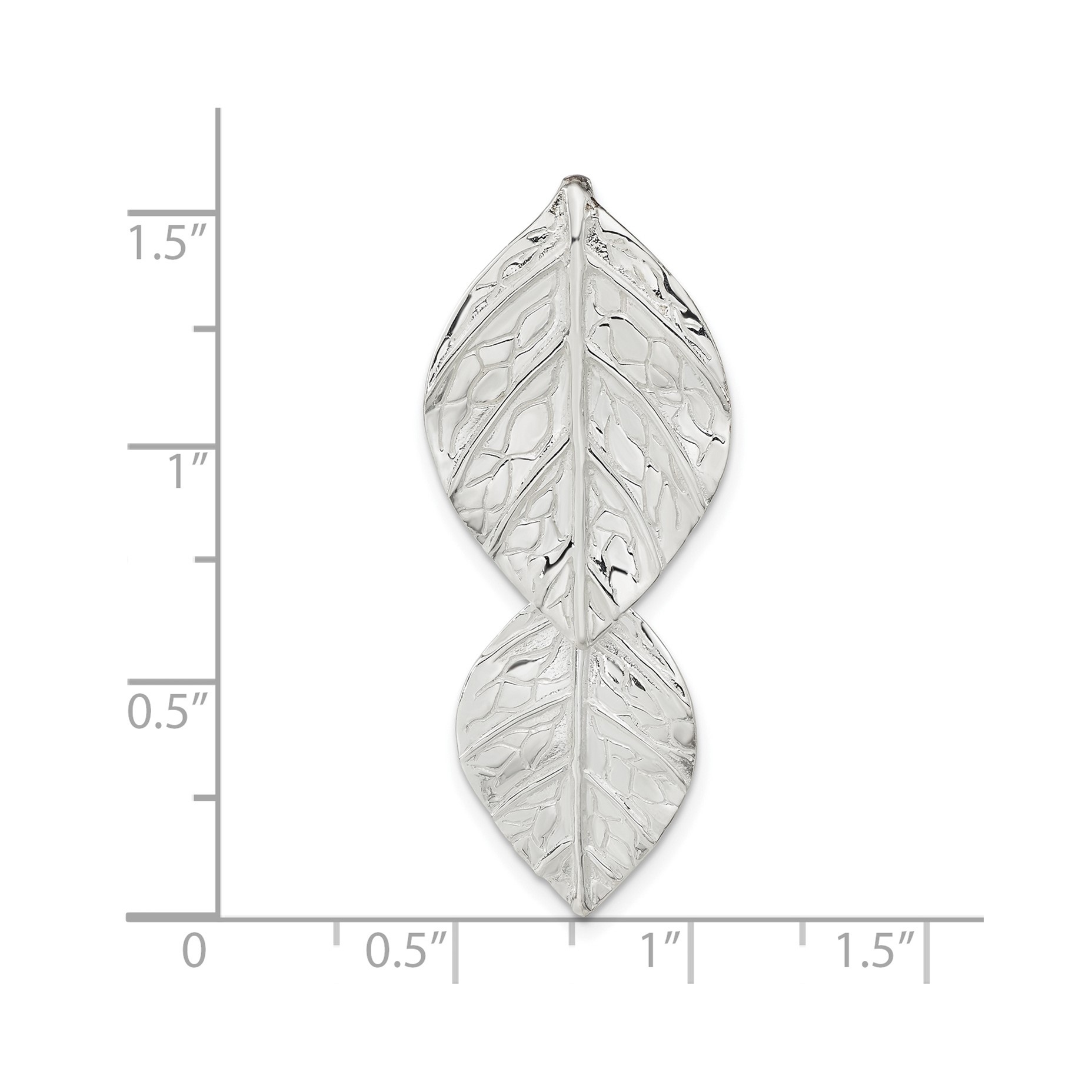 Sterling Silver Double Leaf Textured Chain Slide Pendant