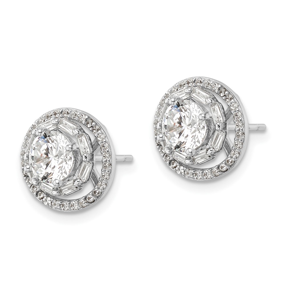Cheryl M Sterling Silver Rhodium-plated 100 Facet Simulated Morganite and White Brilliant-cut CZ Halo Post Earrings