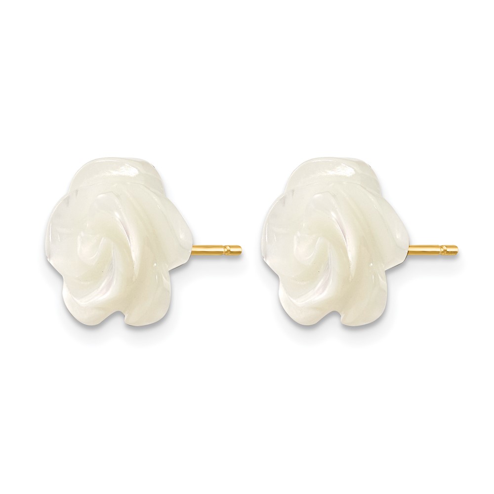 1/20 14K Gold Filled 10mm White MOP Flower Design Post Earrings