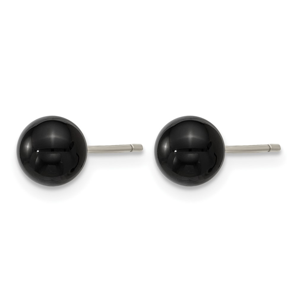 Stainless Steel Polished Black Onyx 6.25mm Post Earrings