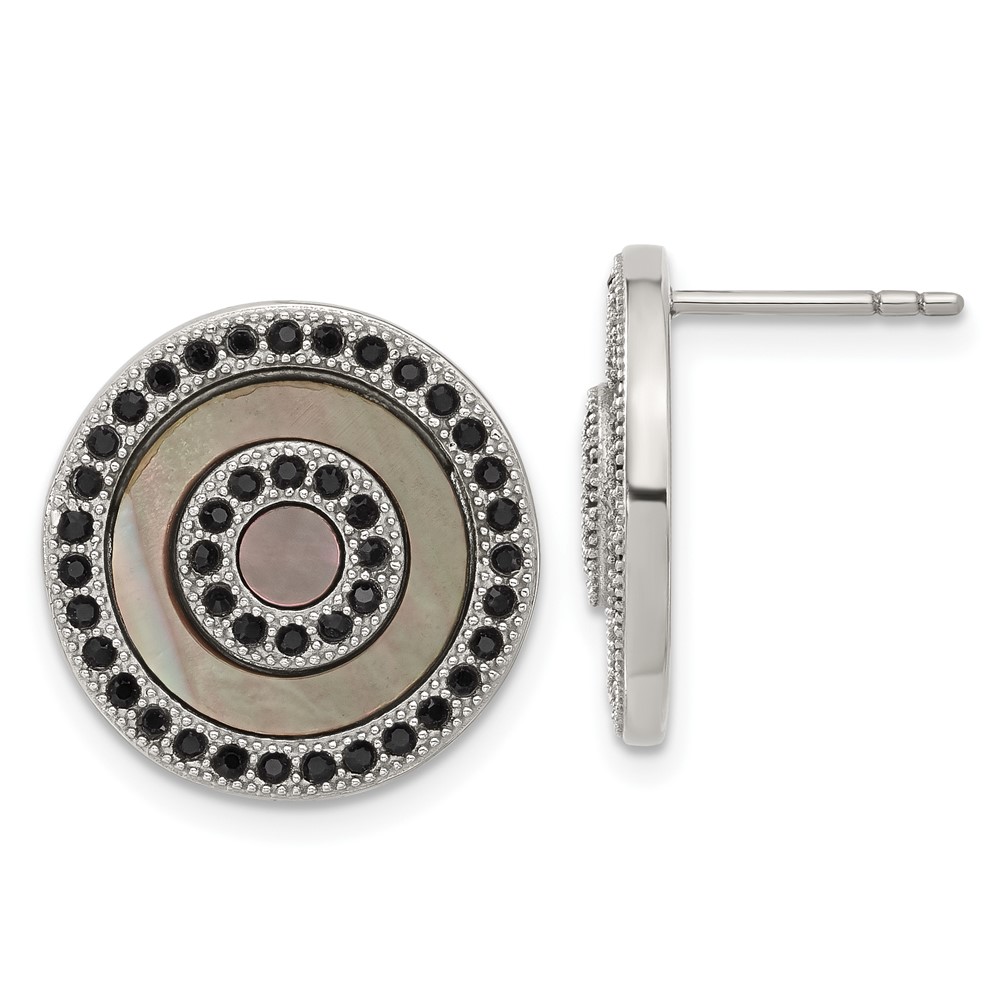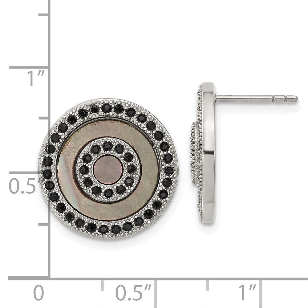 Stainless Steel Polished Black Mother of Pearl/Crystal Post Earrings