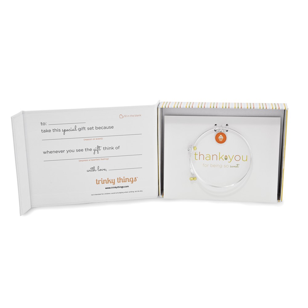 Silver-tone Trinky Things Thank You Bangle Bracelet/Card