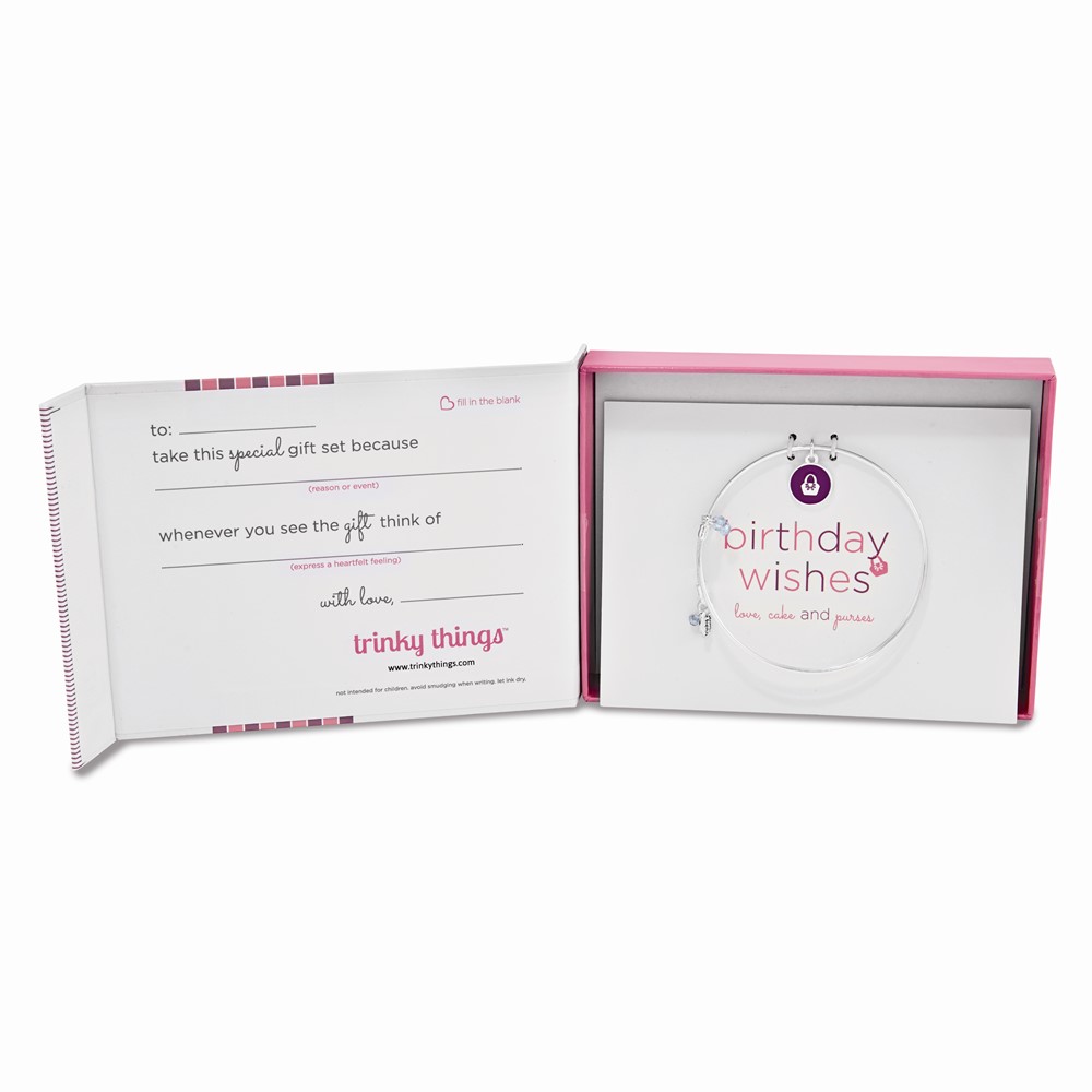 Silver-tone Trinky Things Birthday Wishes Bangle Bracelet/Card