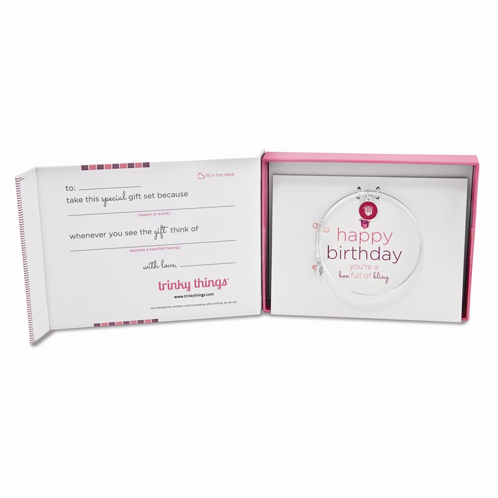 Silver-tone Trinky Things Birthday Box of Bling Bangle Bracelet/Card