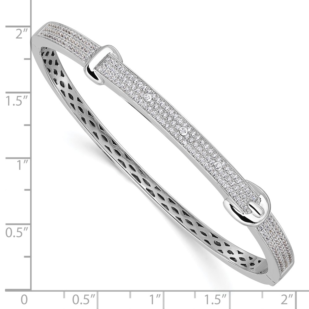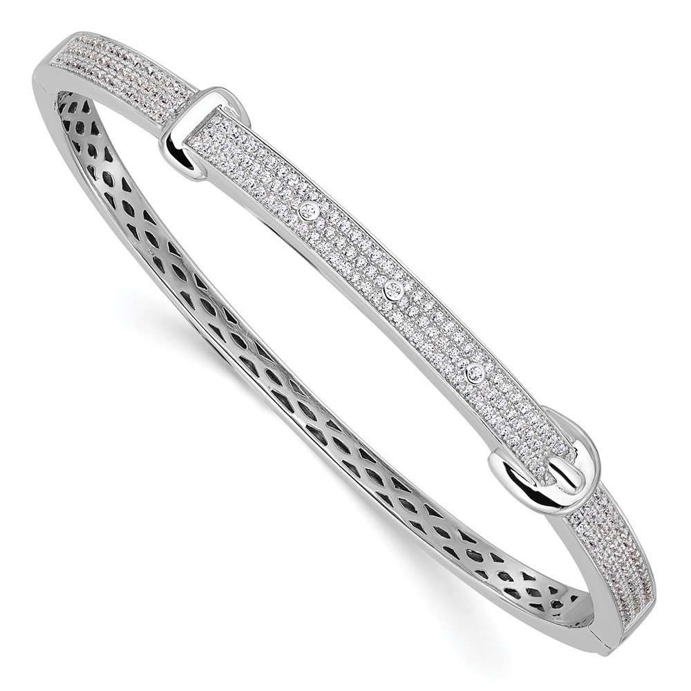 Brilliant Embers Sterling Silver Rhodium-plated 202 Stone Micro Pavé CZ Buckle Hinged Bangle