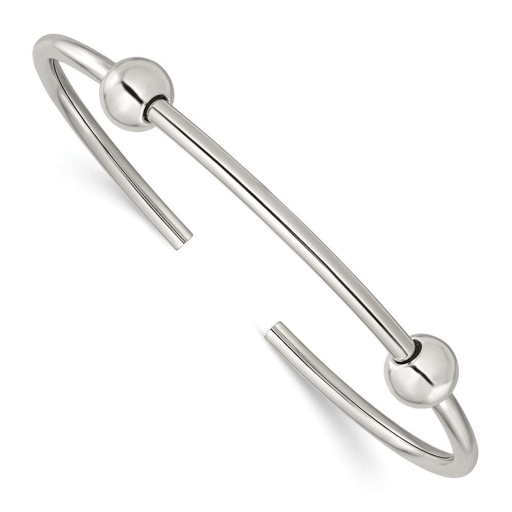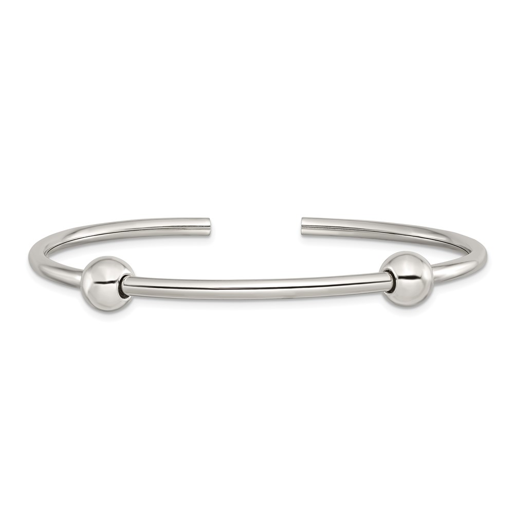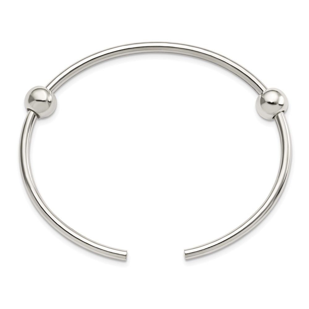 Sterling Silver Reflections Polished Includes 2 Stopper Beads Bangle