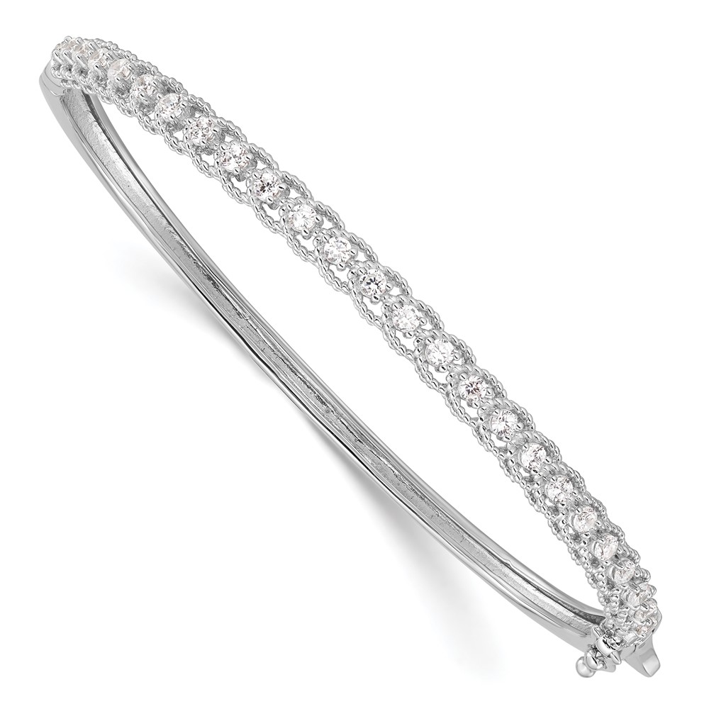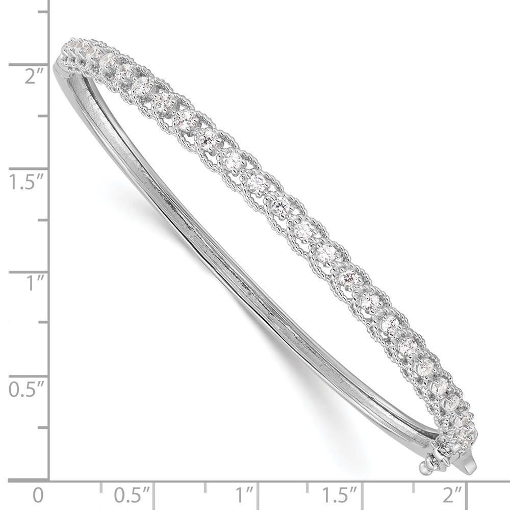 Sterling Shimmer Sterling Silver Rhodium-plated 25 Stone CZ Hinged Bangle Bracelet