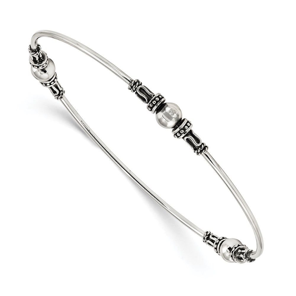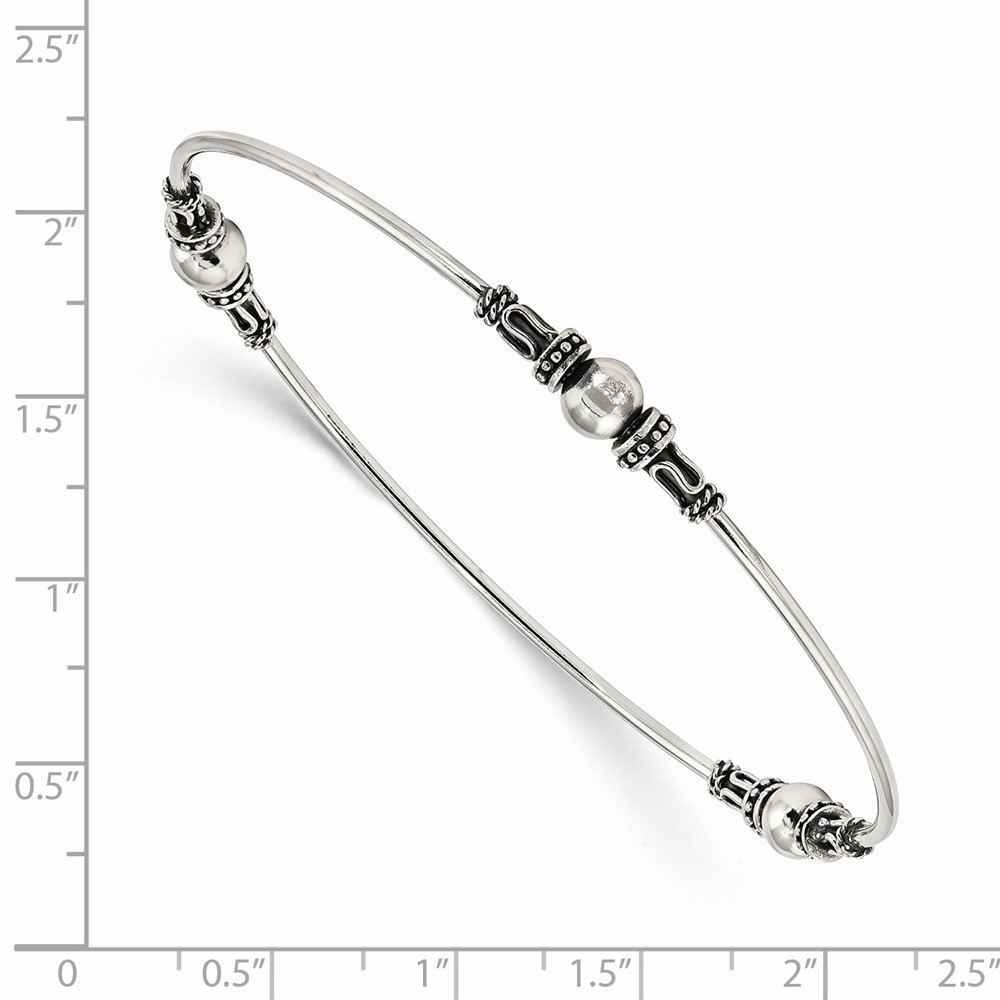 Sterling Silver Antiqued Beaded Slip On Bangle