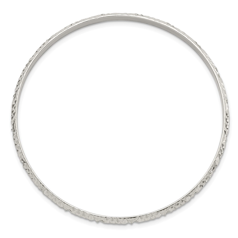 Sterling Silver Rhodium-plated Polished and Diamond-cut 4.00mm Hinged Bangle
