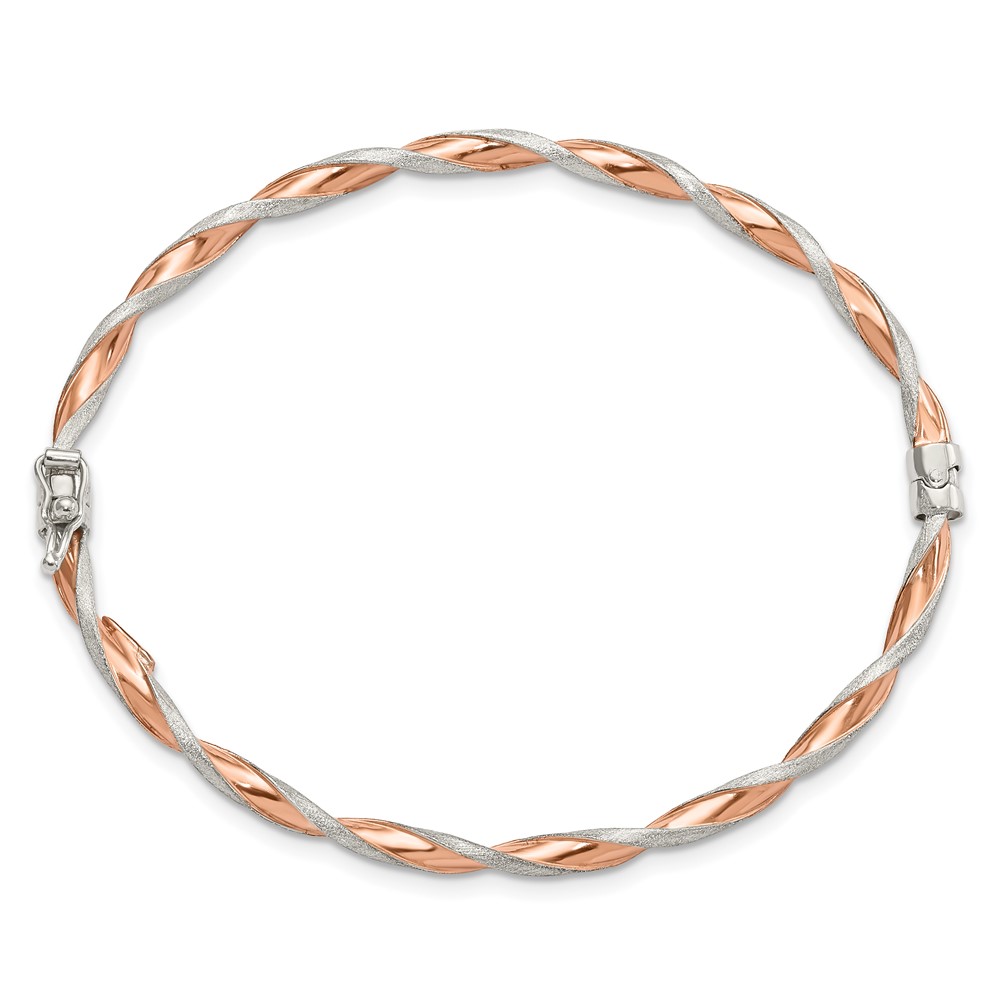 Sterling Silver Rose-tone Satin/Polish Twisted 3mm Hinged Bangle