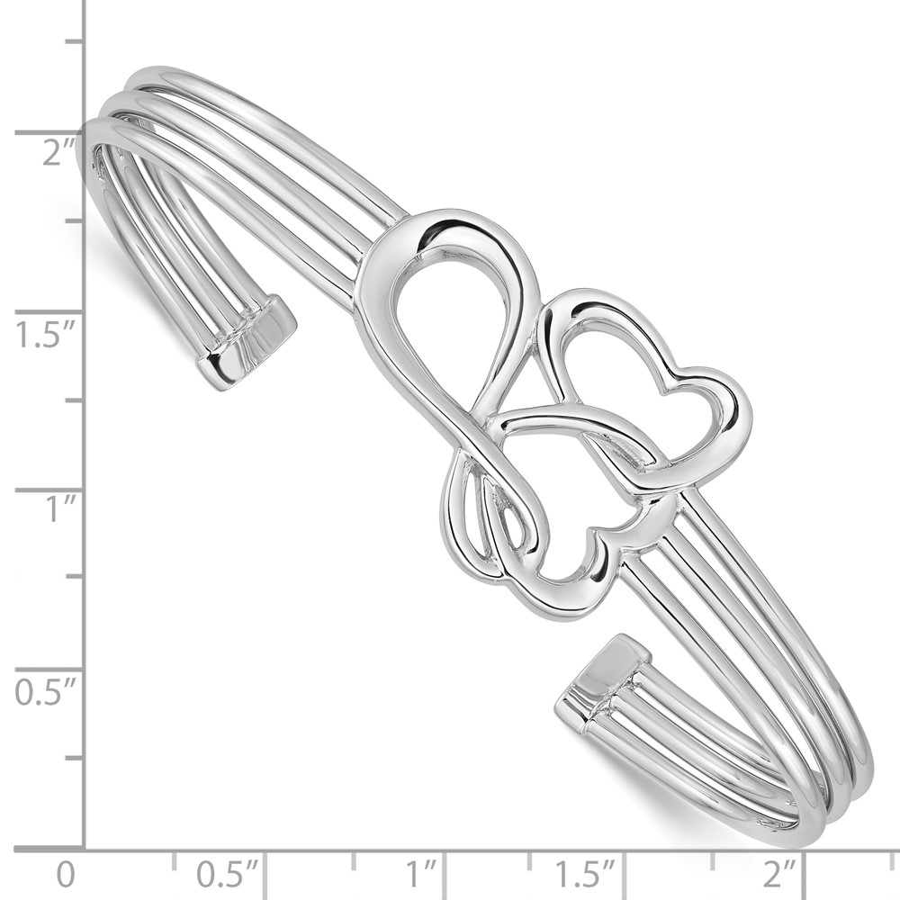 Sterling Silver Rhodium-plated Hearts and Infinity Cuff Bangle