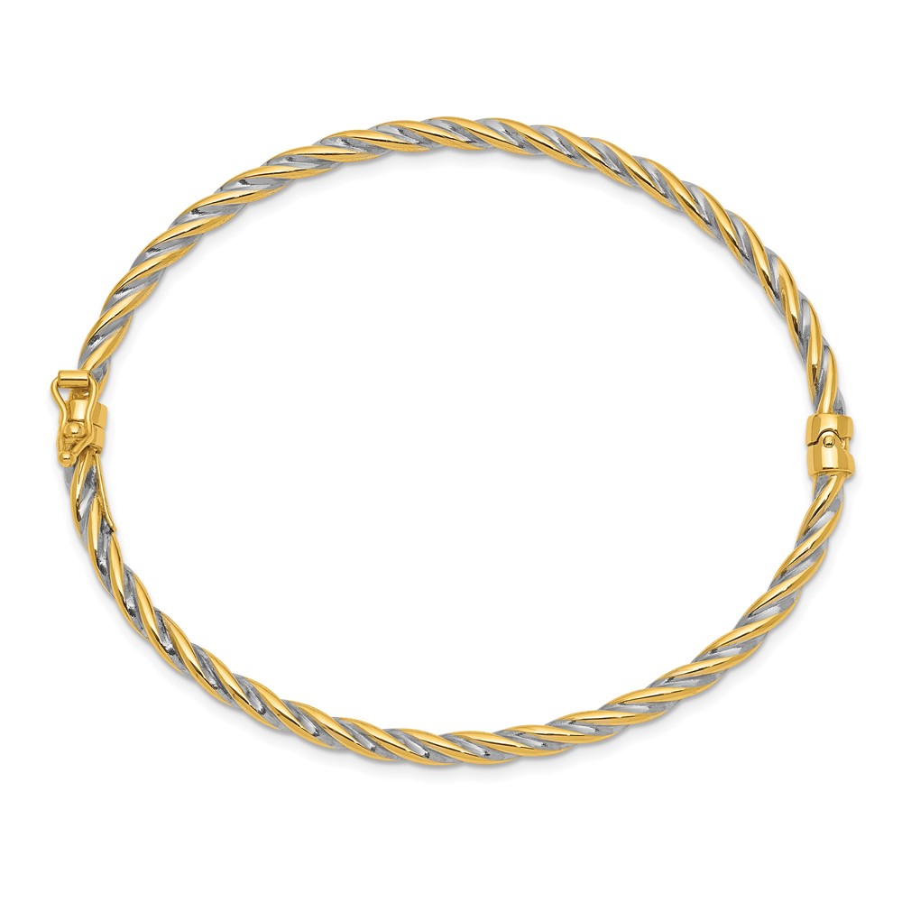 14k Two-Tone Polished 3.00mm Hinged Bangle Oval Bracelet