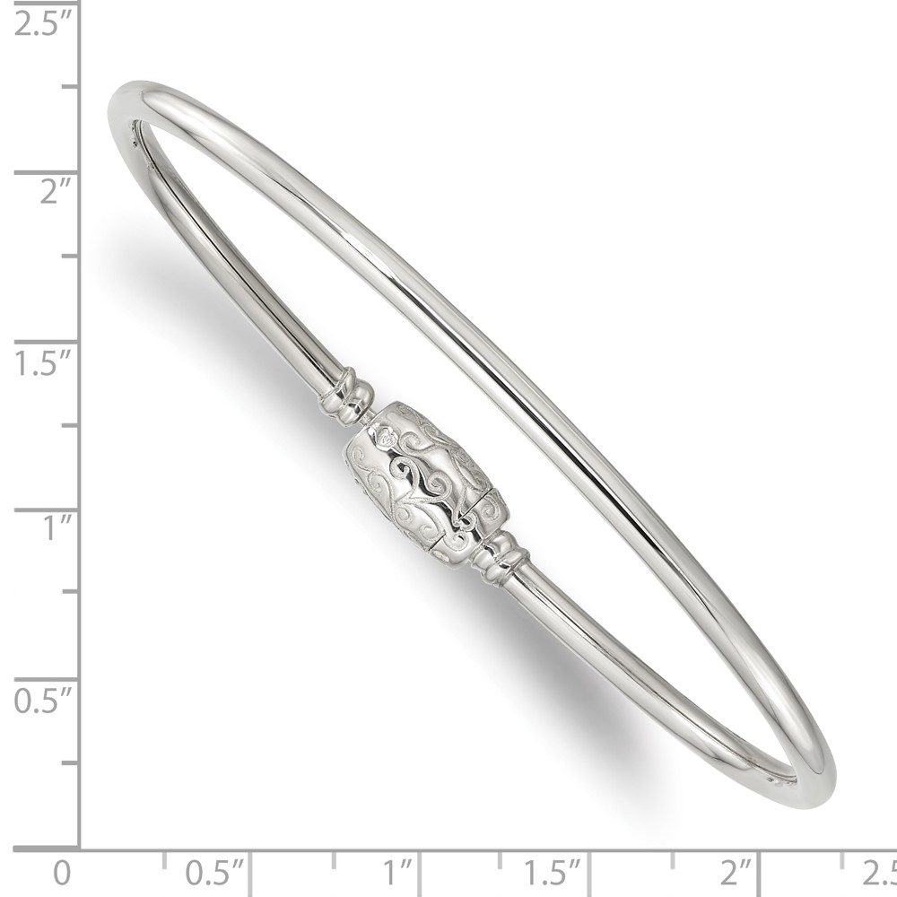 14K White Gold Diamond-cut and Laser-cut 4.10mm Hinged Oval Bangle Bracelet