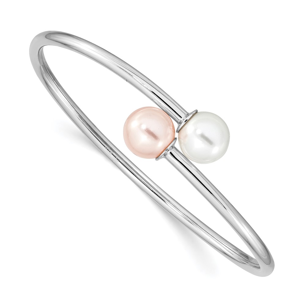 Majestik Sterling Silver Rhodium-plated 10-11mm White Pink Imitation Shell Pearl Bangle