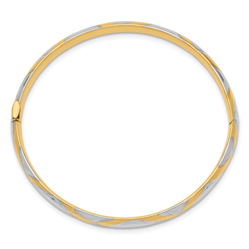 14k and White Rhodium 3/16 Criss-Cross 4.75mm Hinged Childrens Bangle