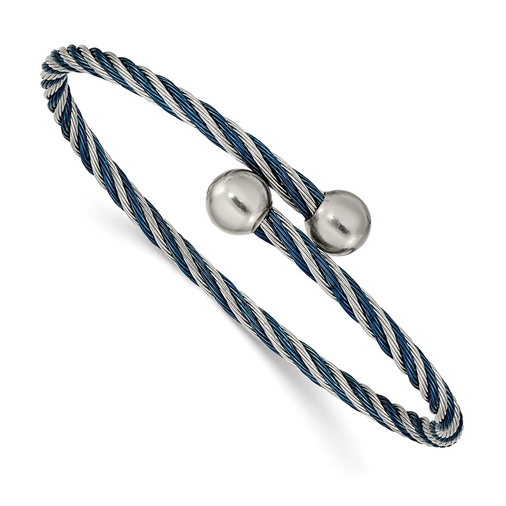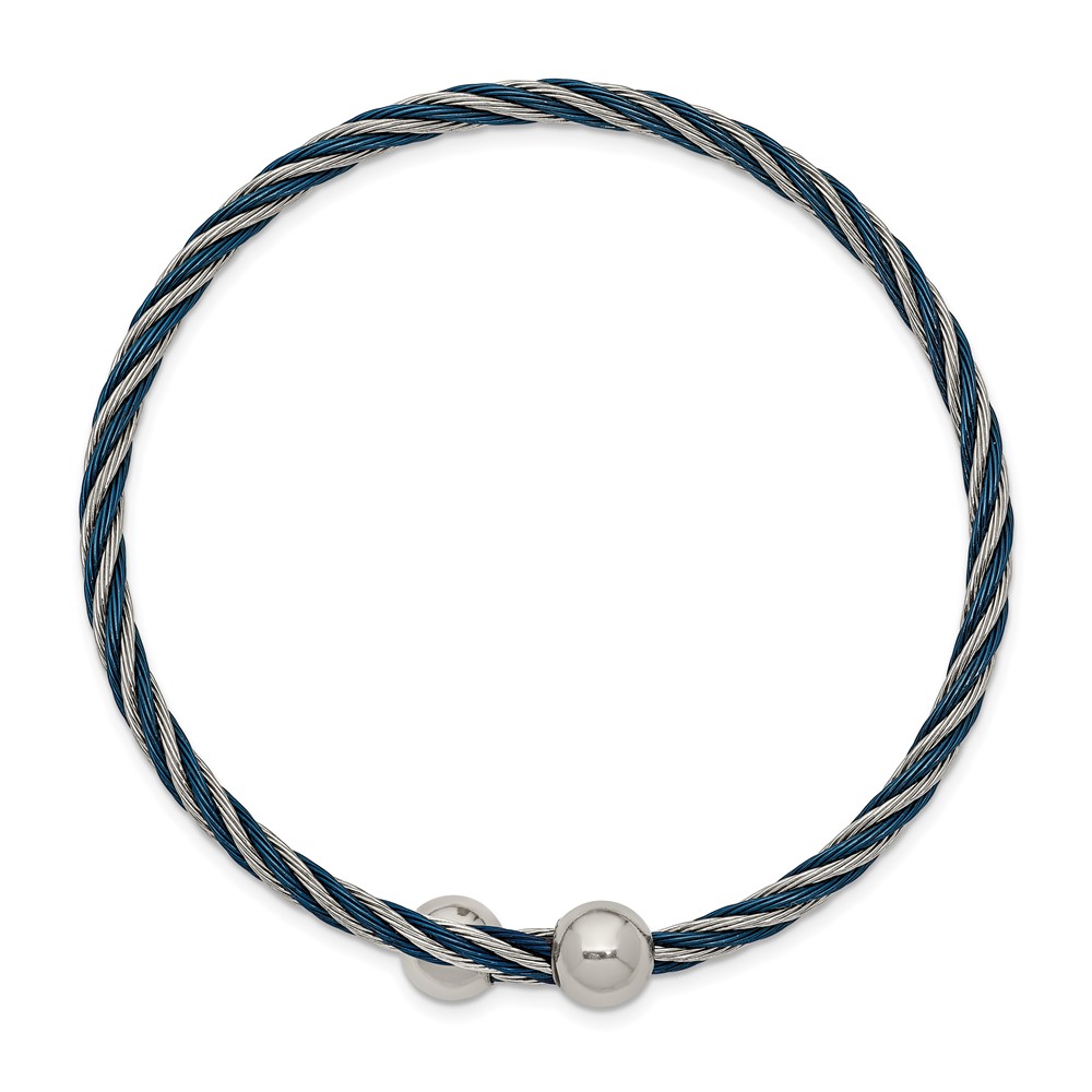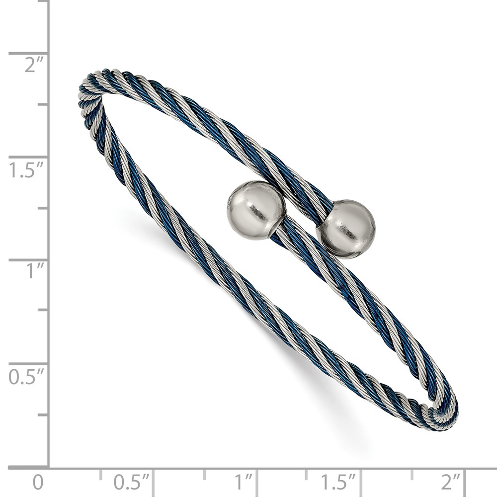Chisel Stainless Steel Polished Blue IP-plated 3.00mm Flexible Bangle