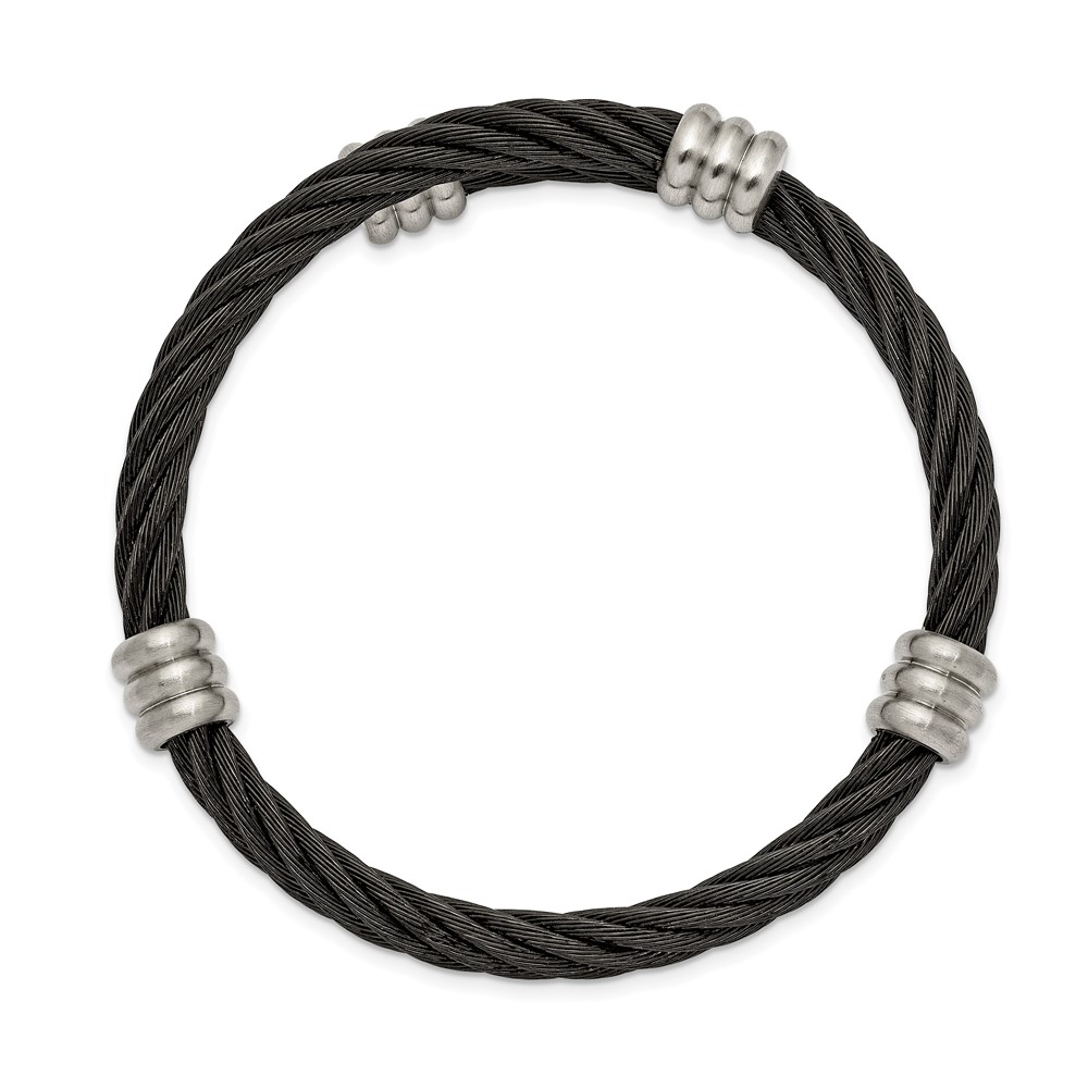 Chisel Stainless Steel Brushed and Polished Black IP-plated Wire Flexible Bangle