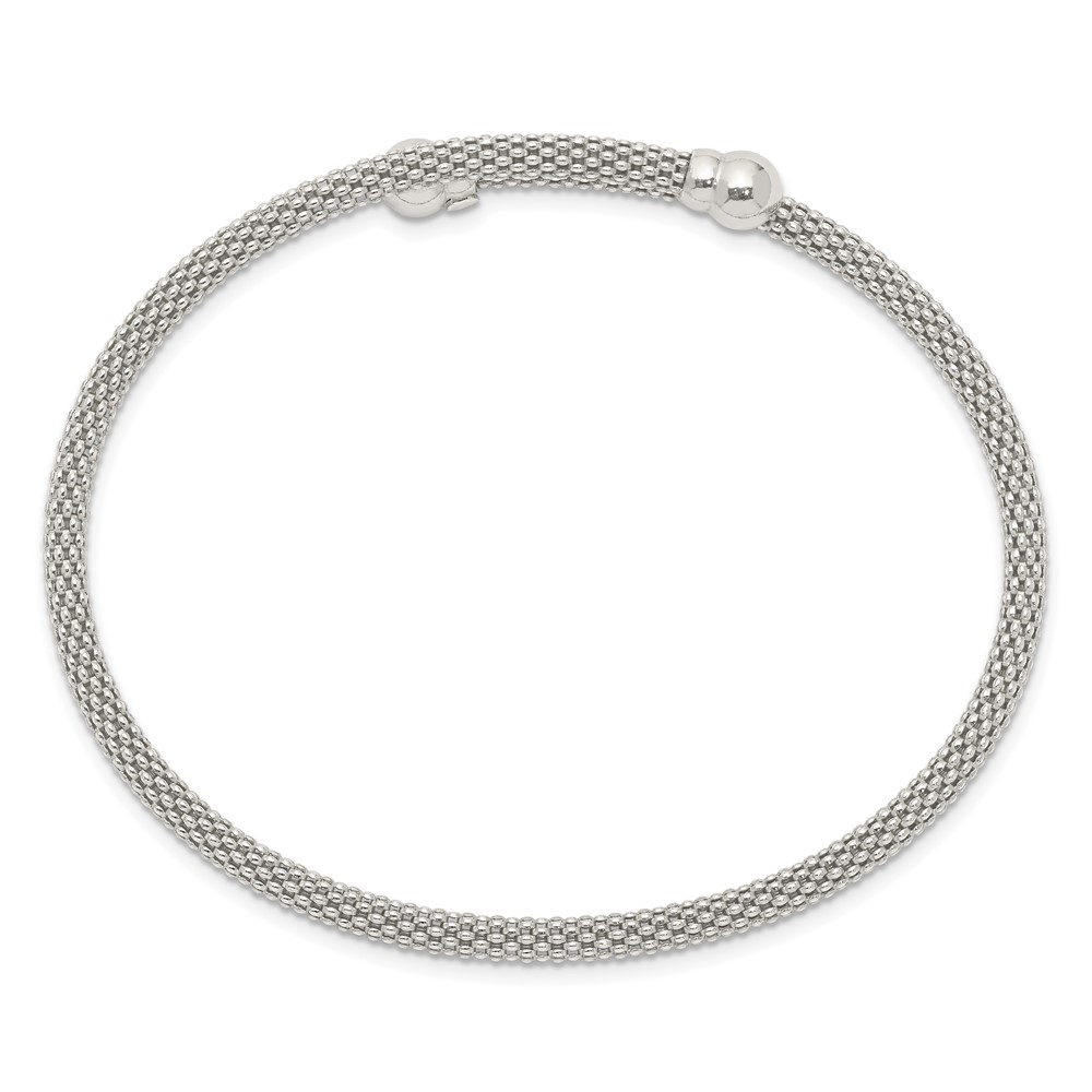 Sterling Silver Polished Rhodium-plated Textured Link Hinged Bangle Bracele