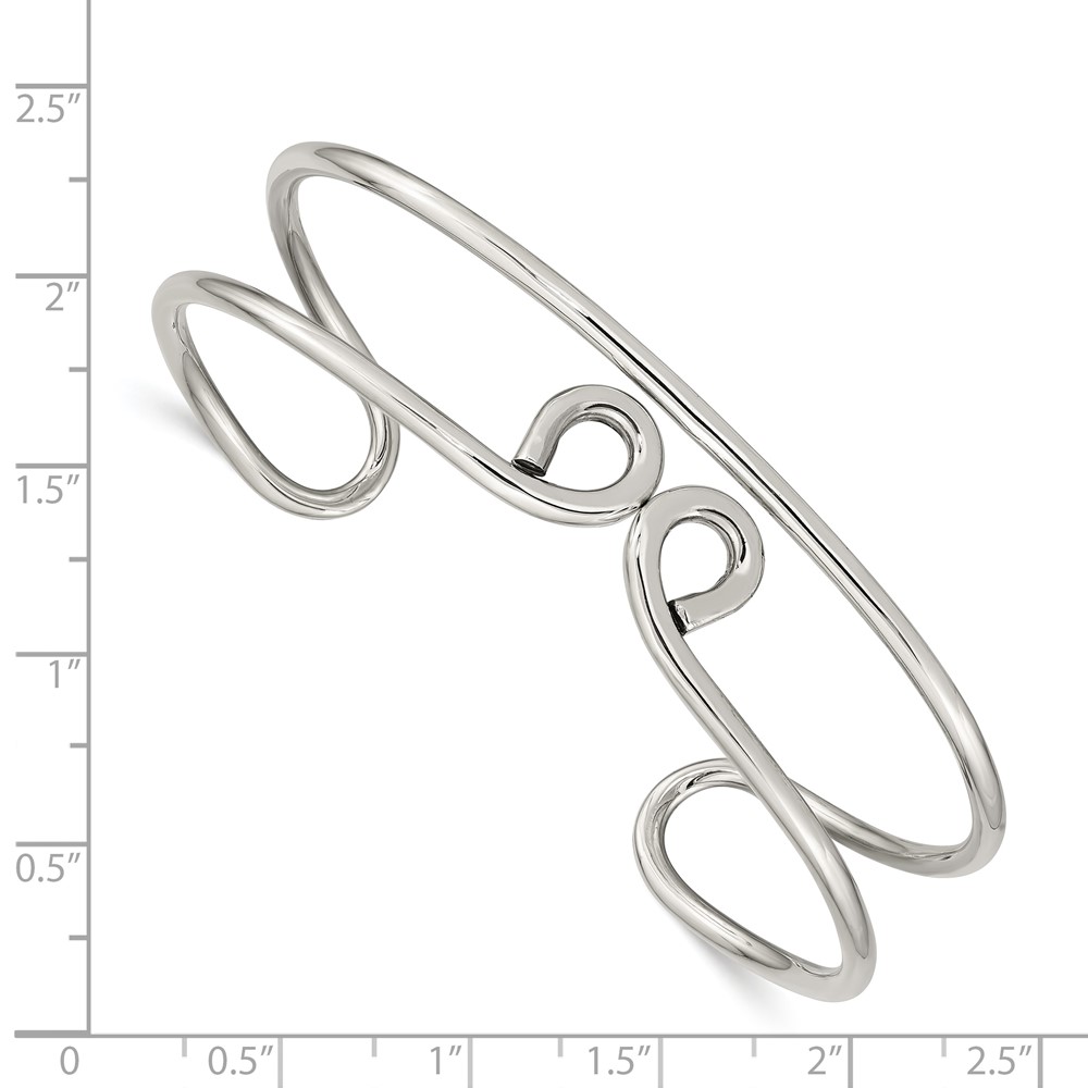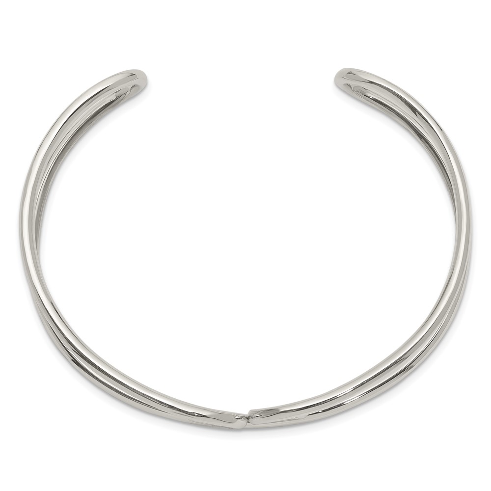 Sterling Silver Polished Rhodium-plated Textured Link Hinged Bangle Bracele