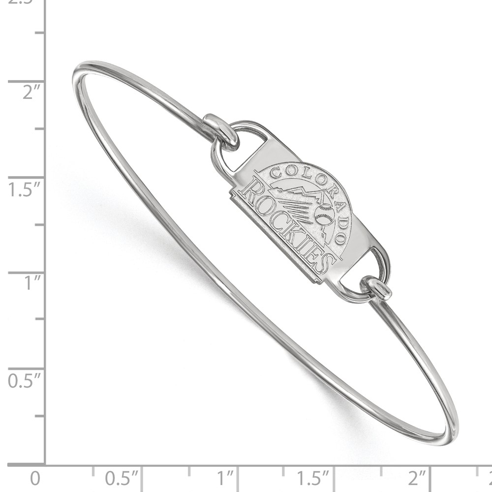 Sterling Silver Rhodium Plated Major League Baseball LogoArt Colorado Rockies Leather Bracelet