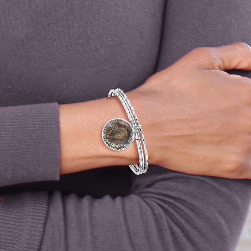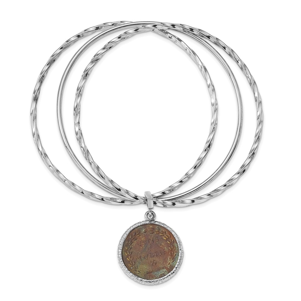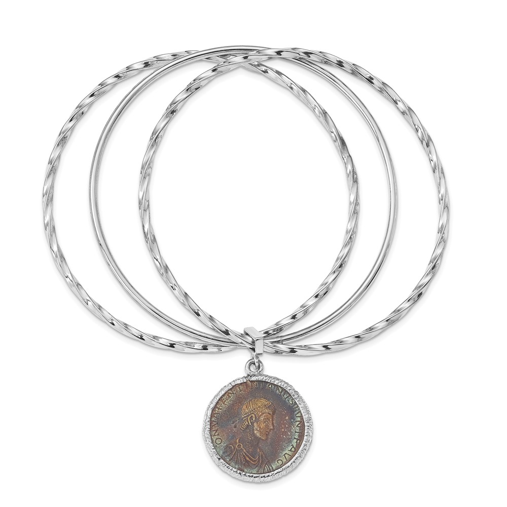 Leslie's Sterling Silver Rhodium-plated Bronze Roman Coin Bangle