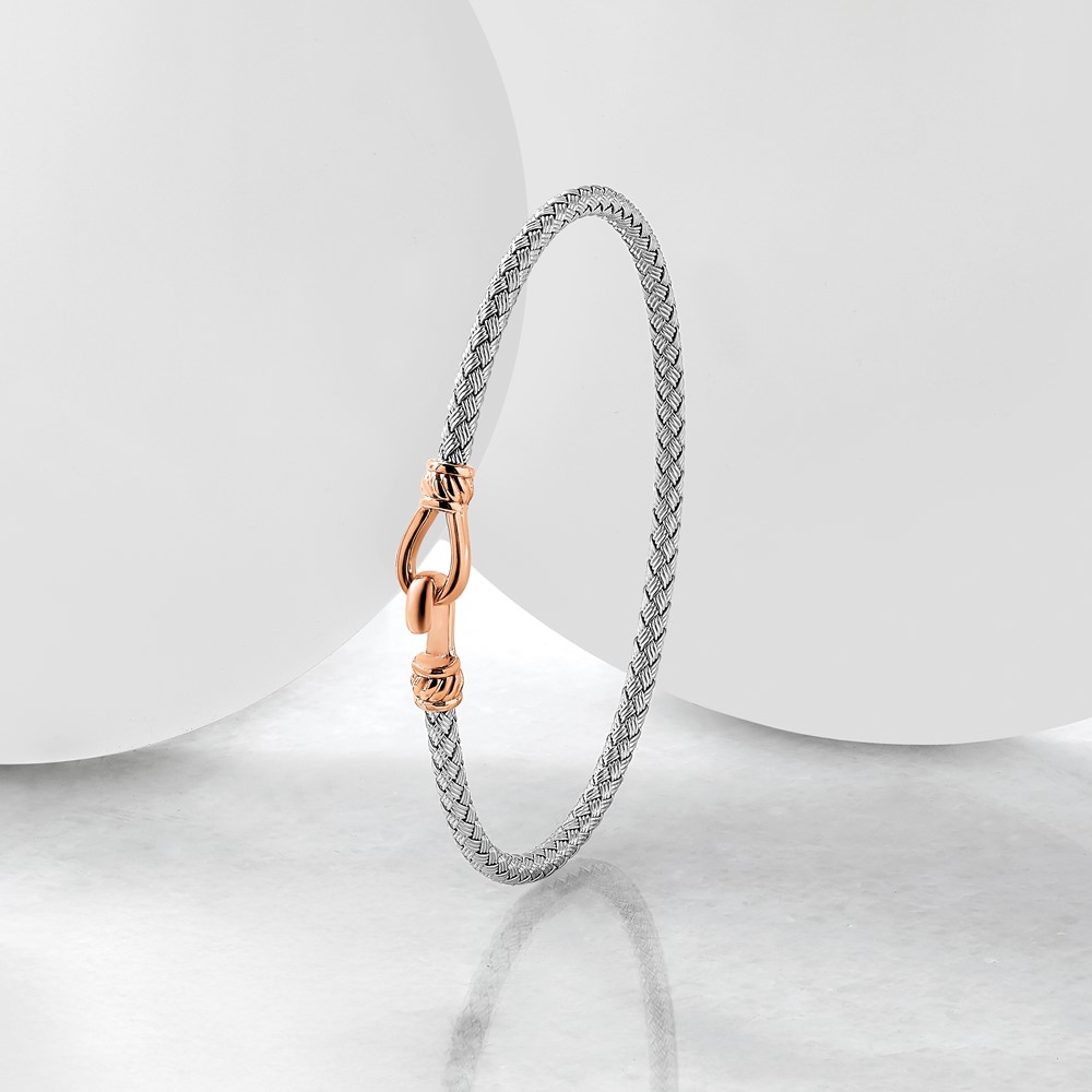 Leslie's Sterling Silver RH-plated & Rose Gold-plated Flexible Cuff