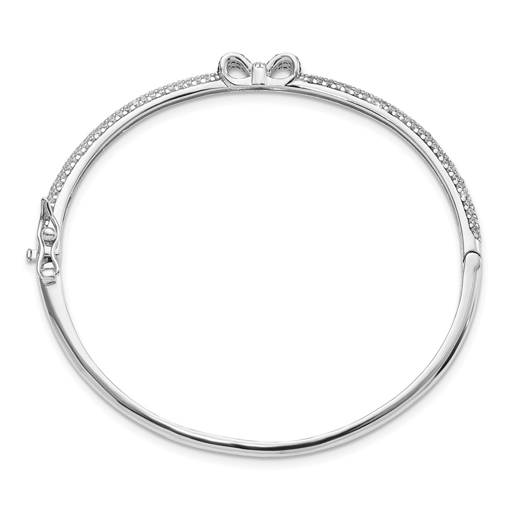 Sterling Silver Polished Black and White CZ Bow Hinged Bangle