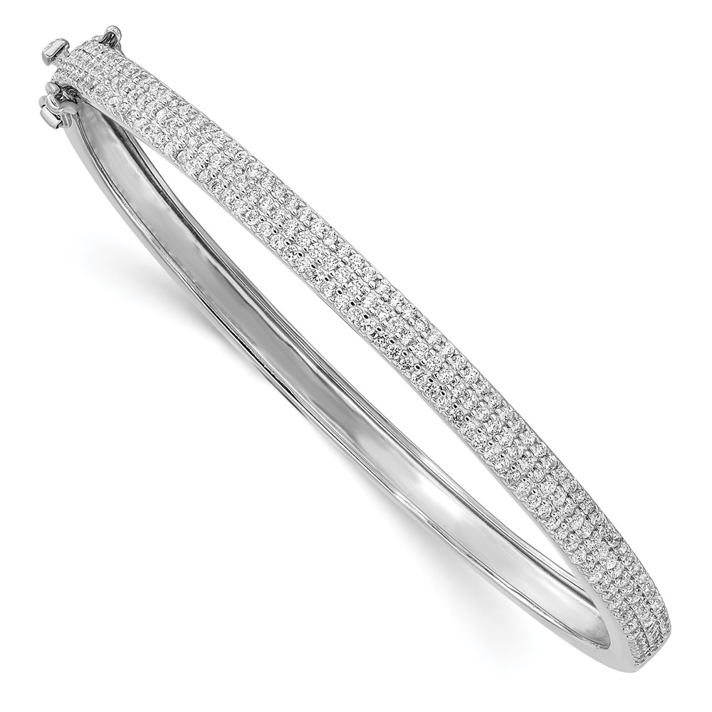 Sterling Silver Rhod Plated CZ Hinged Bangle