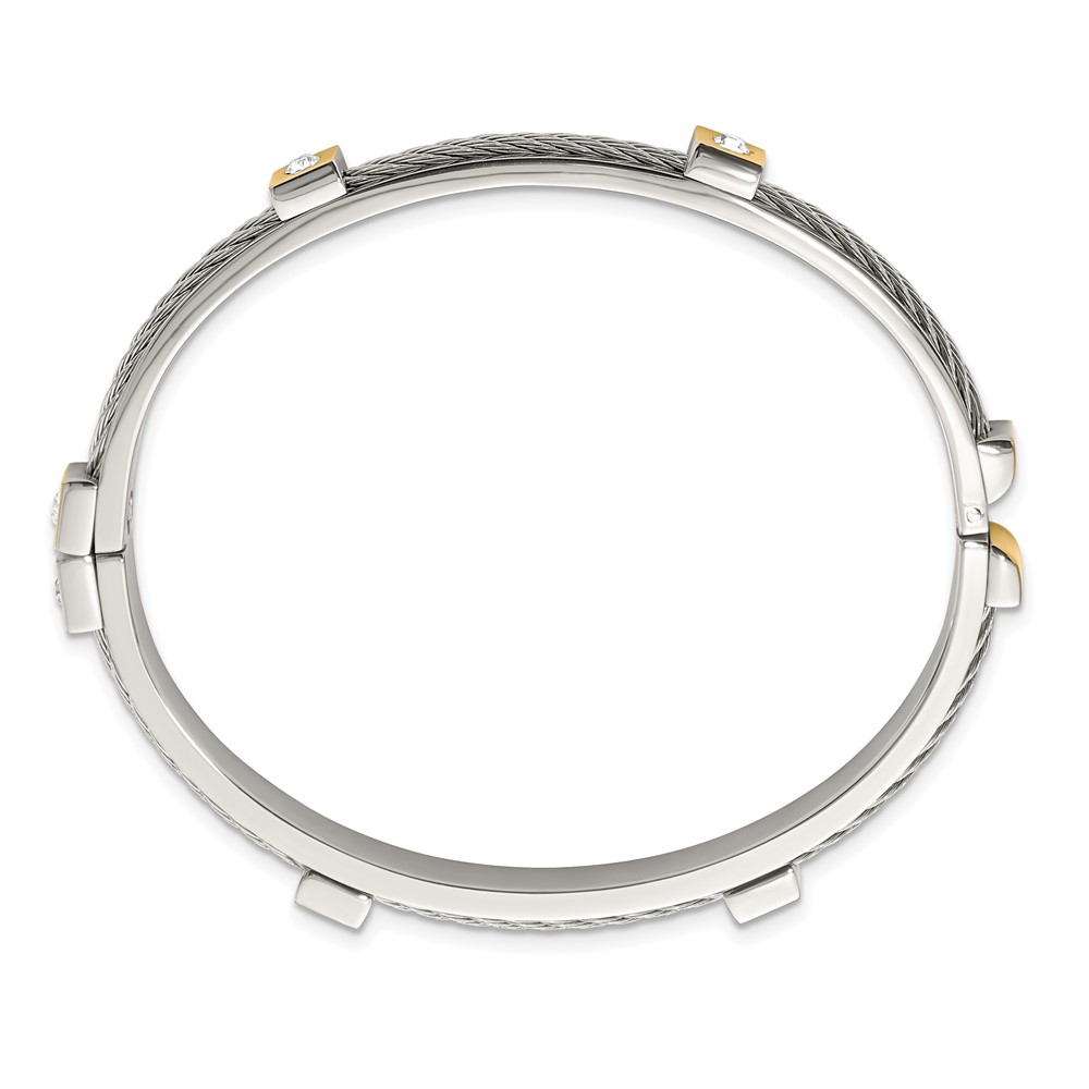 Chisel Stainless Steel Polished Yellow IP-plated with Preciosa Crystal Hinged Bangle