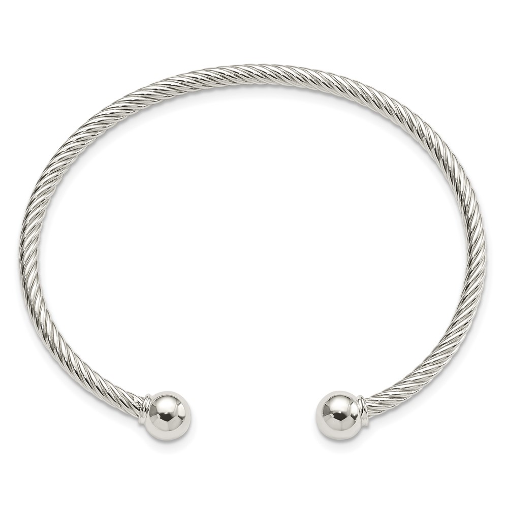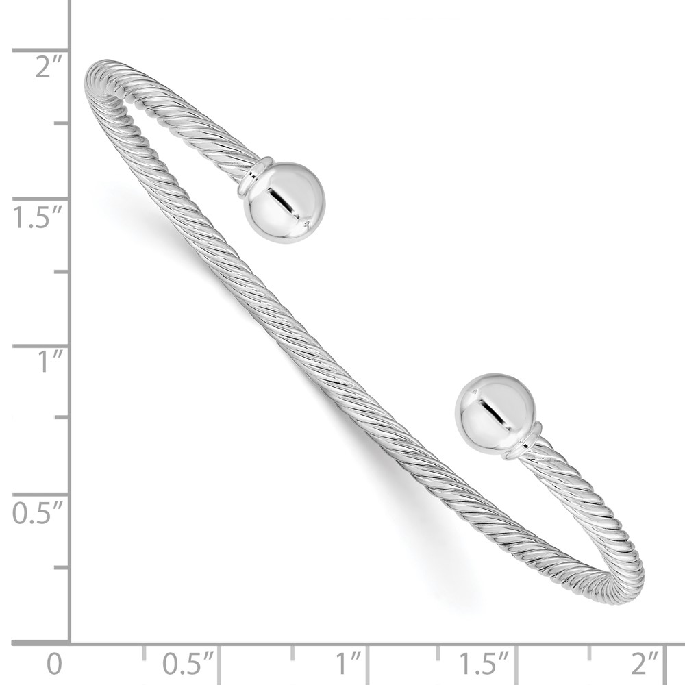 Sterling Silver Rhod-plated Twisted w/1 Thread Ball Cuff Bangle