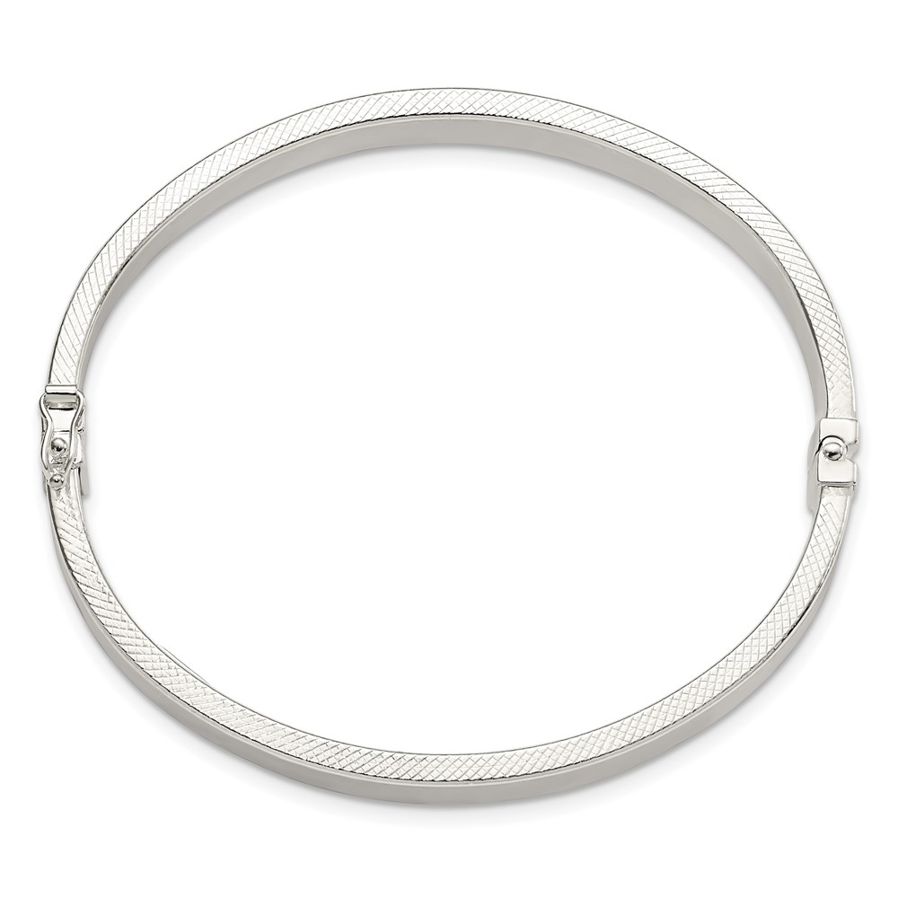 Sterling Silver Polished & Textured Hinged Bangle