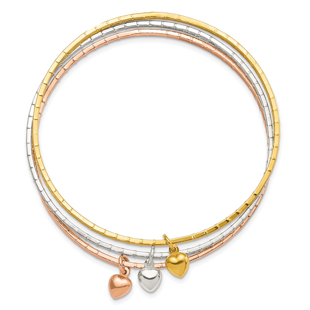 Sterling Silver/Gold-tone/Rose-tone w/Puffed Heart Bangle Set