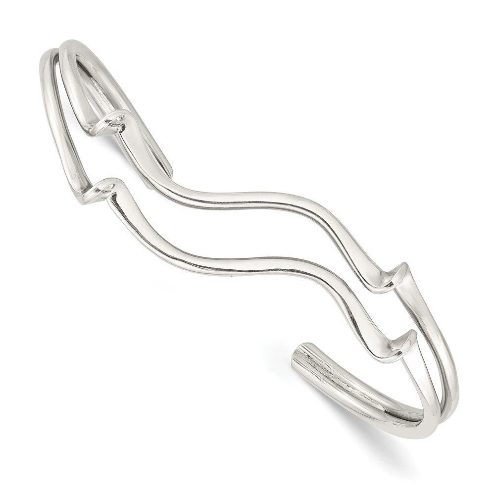 Sterling Silver Polished Wavy Cuff Bangle