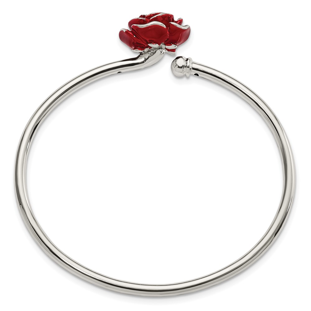 Sterling Silver Polished Enameled Rose Flexible Bangle