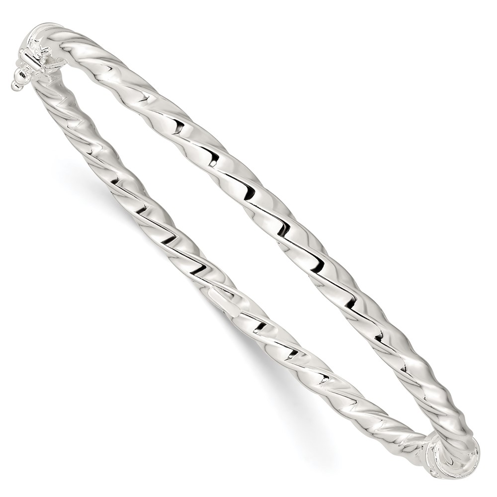 Sterling Silver Polished Twisted Hinged Bangle