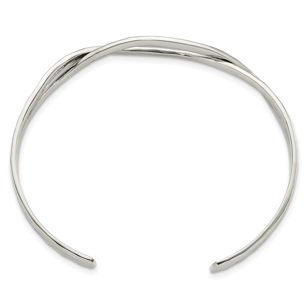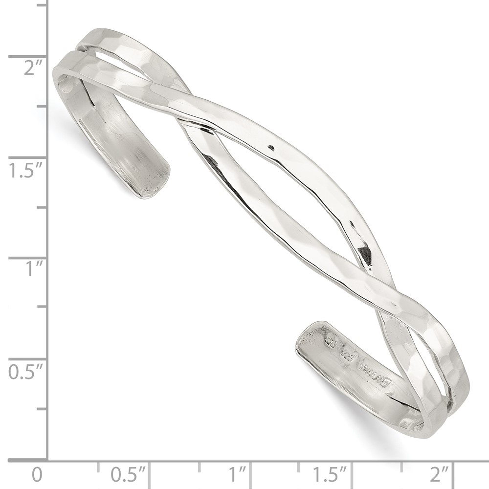 Sterling Silver Polished Hammered Criss Cross Cuff Bangle