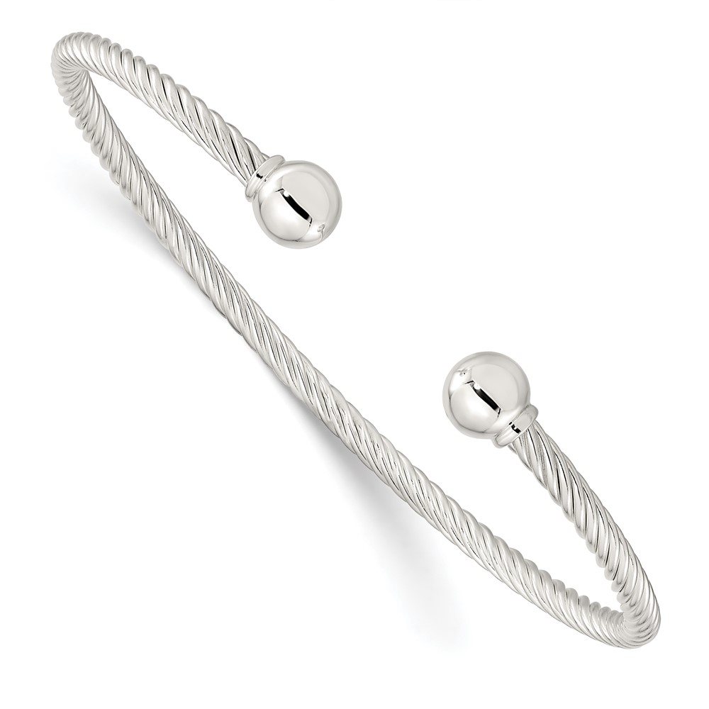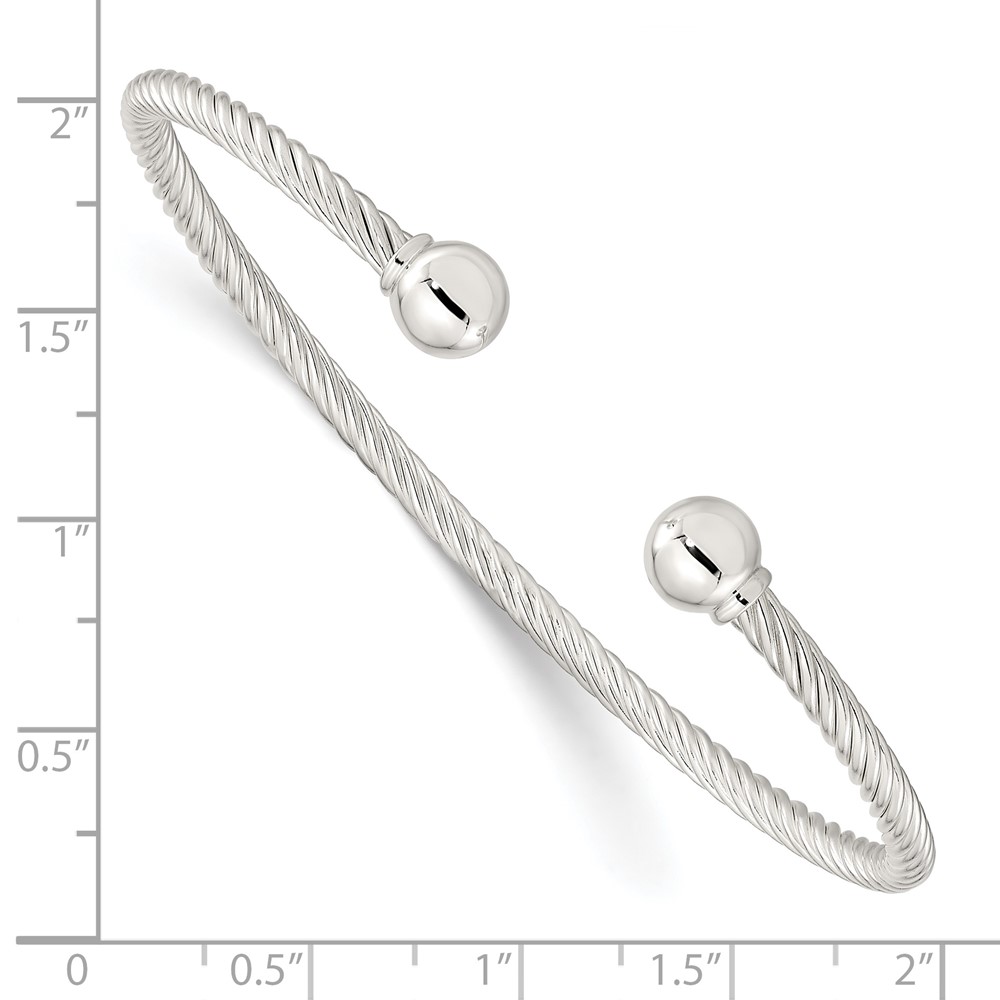 Sterling Silver Polished Twisted w/1 Thread Ball Cuff Bangle