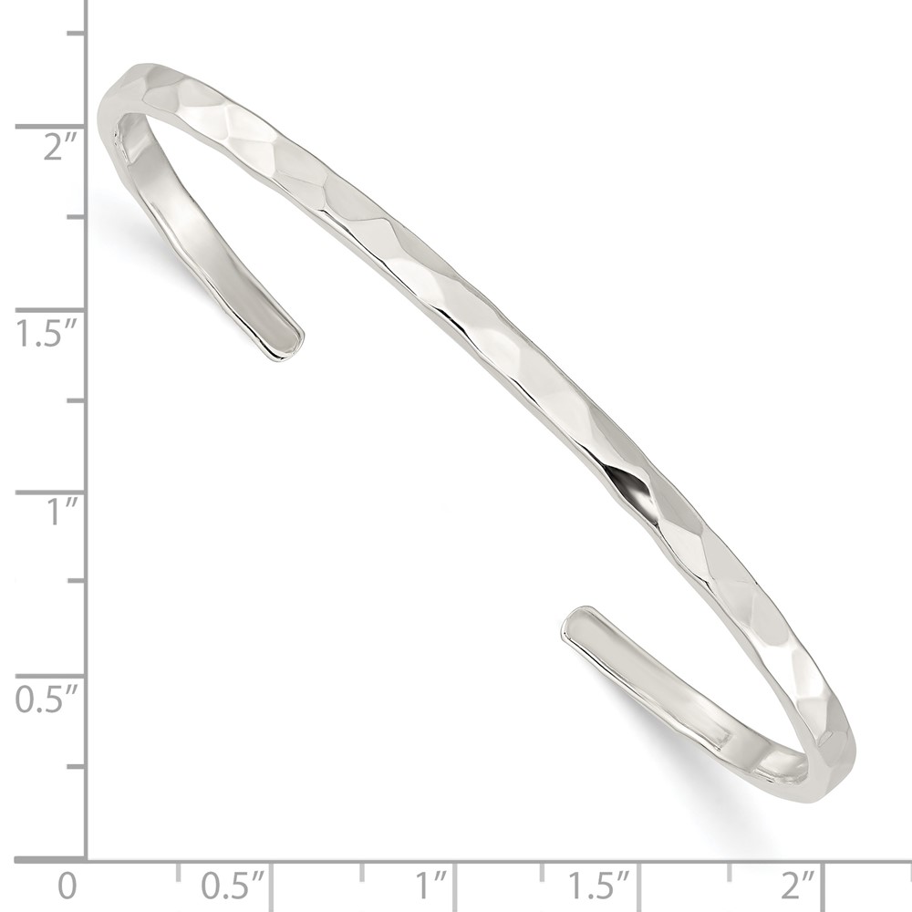 Sterling Silver Polished Hammered Cuff Bangle