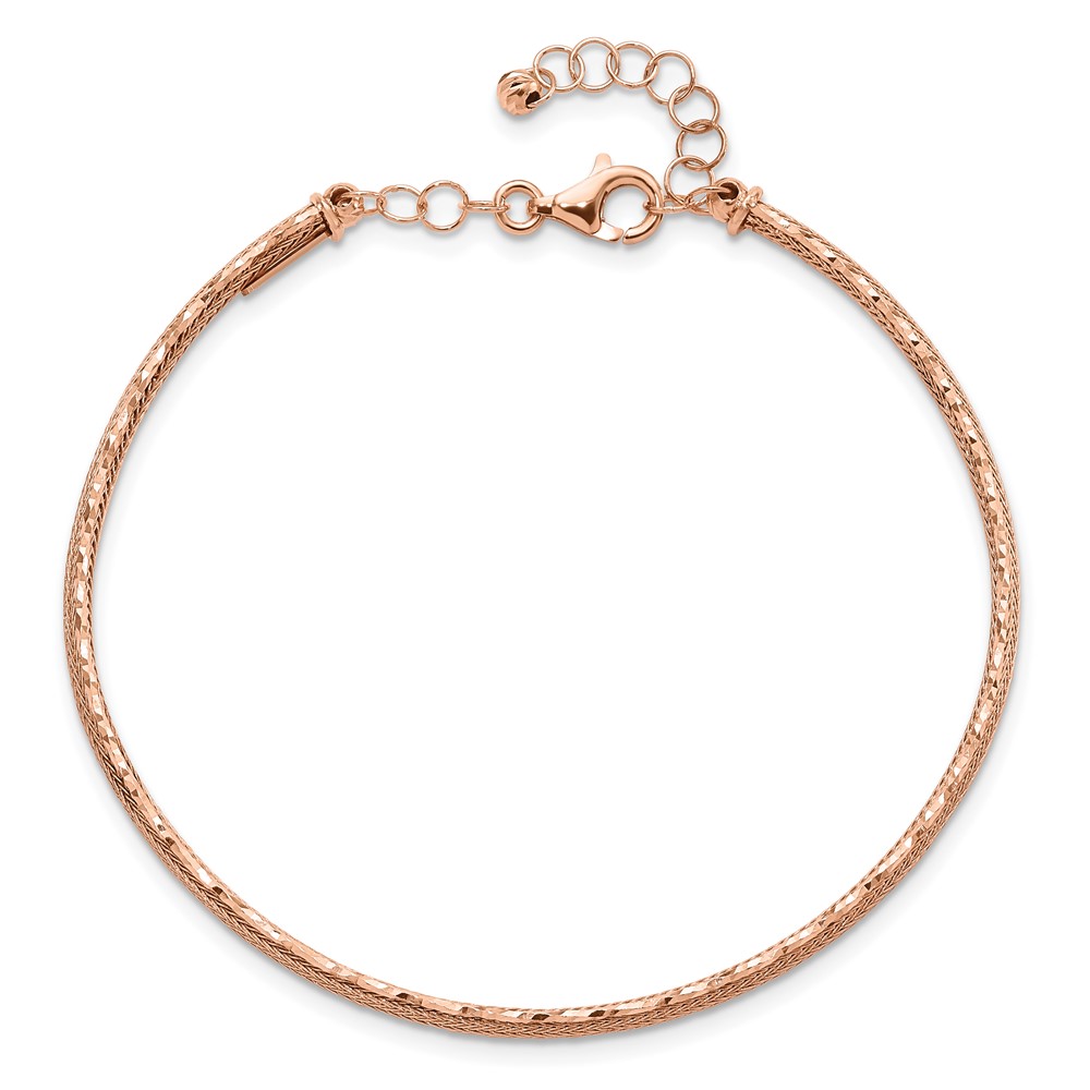 Leslie's 14K Rose Gold Dia-cut and Textured with Safety Chain Bangle