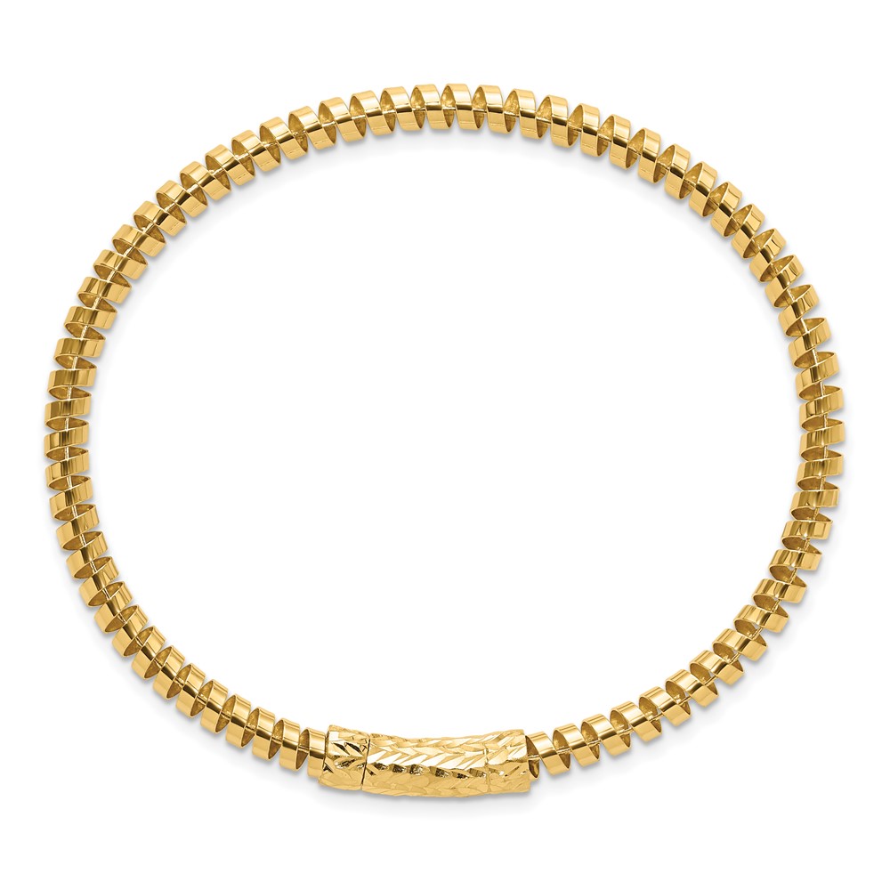 14K Polished and Diamond-cut Fancy Spiral 3.75mm Flexible Oval Bangle Bracelet
