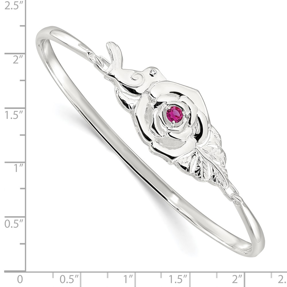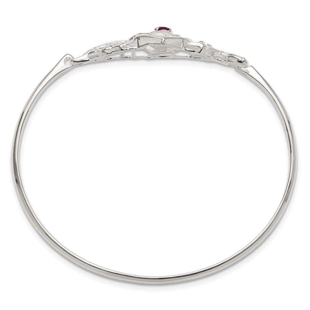Sterling Silver Polished Red CZ Flower Bird Hook Bangle Bracelet