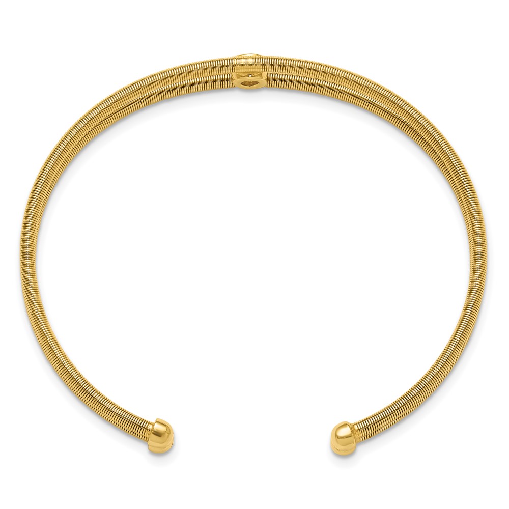 Sterling Silver Polished Gold-tone Textured CZ Two Band Cuff Bracelet