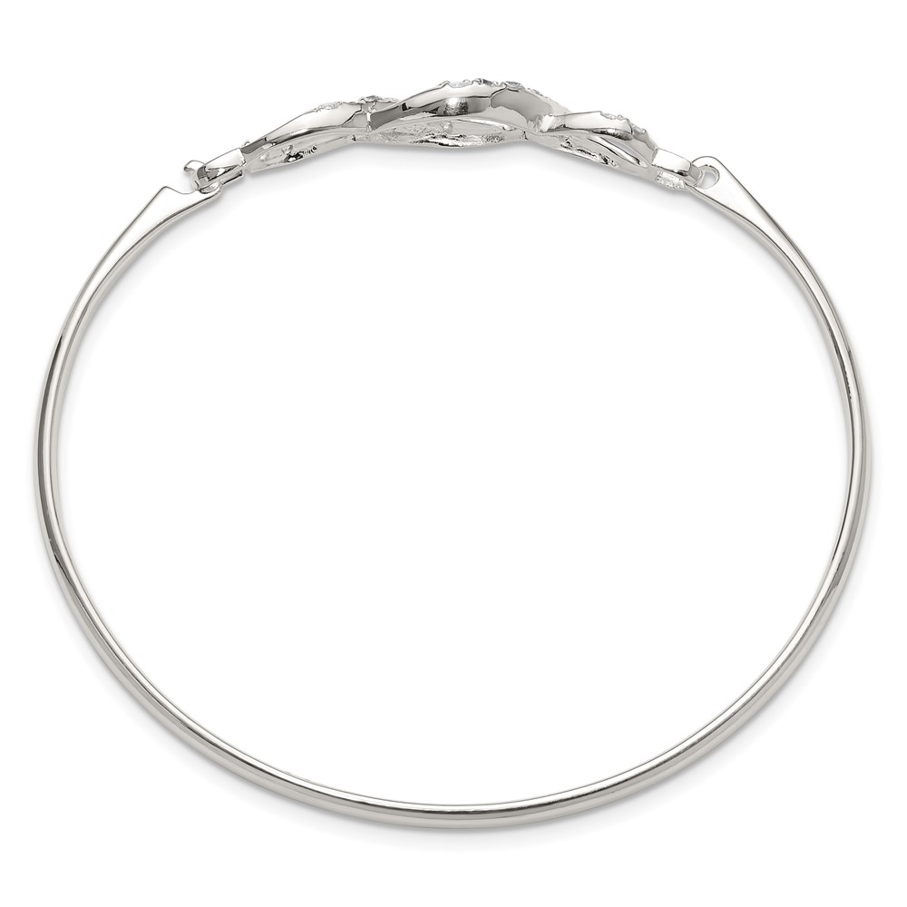 Sterling Silver Polished CZ Fancy Hook Bangle Bracelet