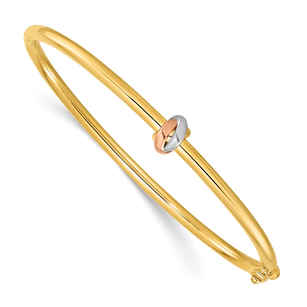 Herco 14K Tri-color Polished Love Knot Hinged Bangle